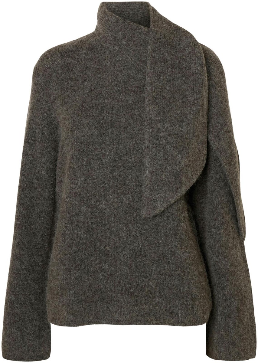 Tyylikäs neulepusero muodikkaalla huivimaisella kauluksella.