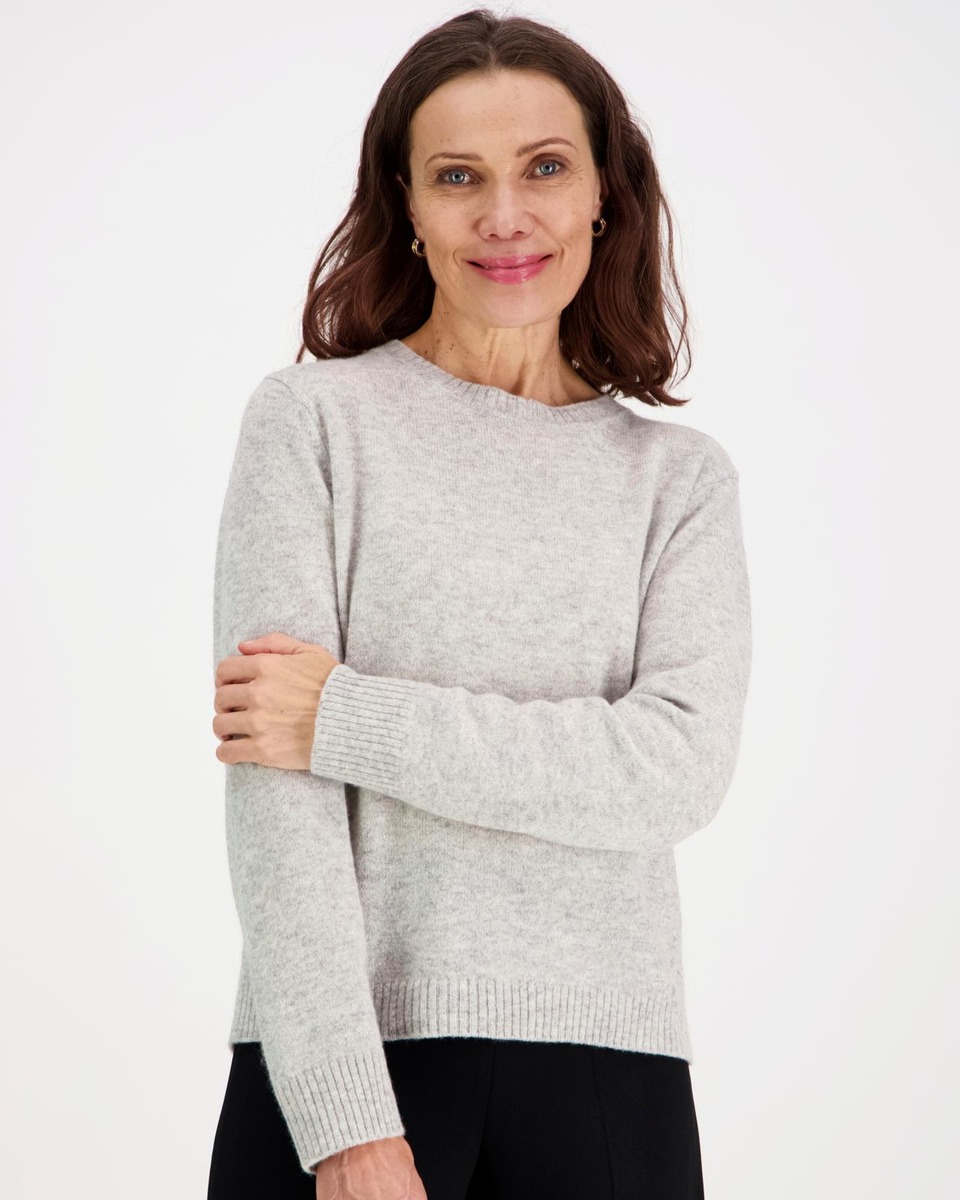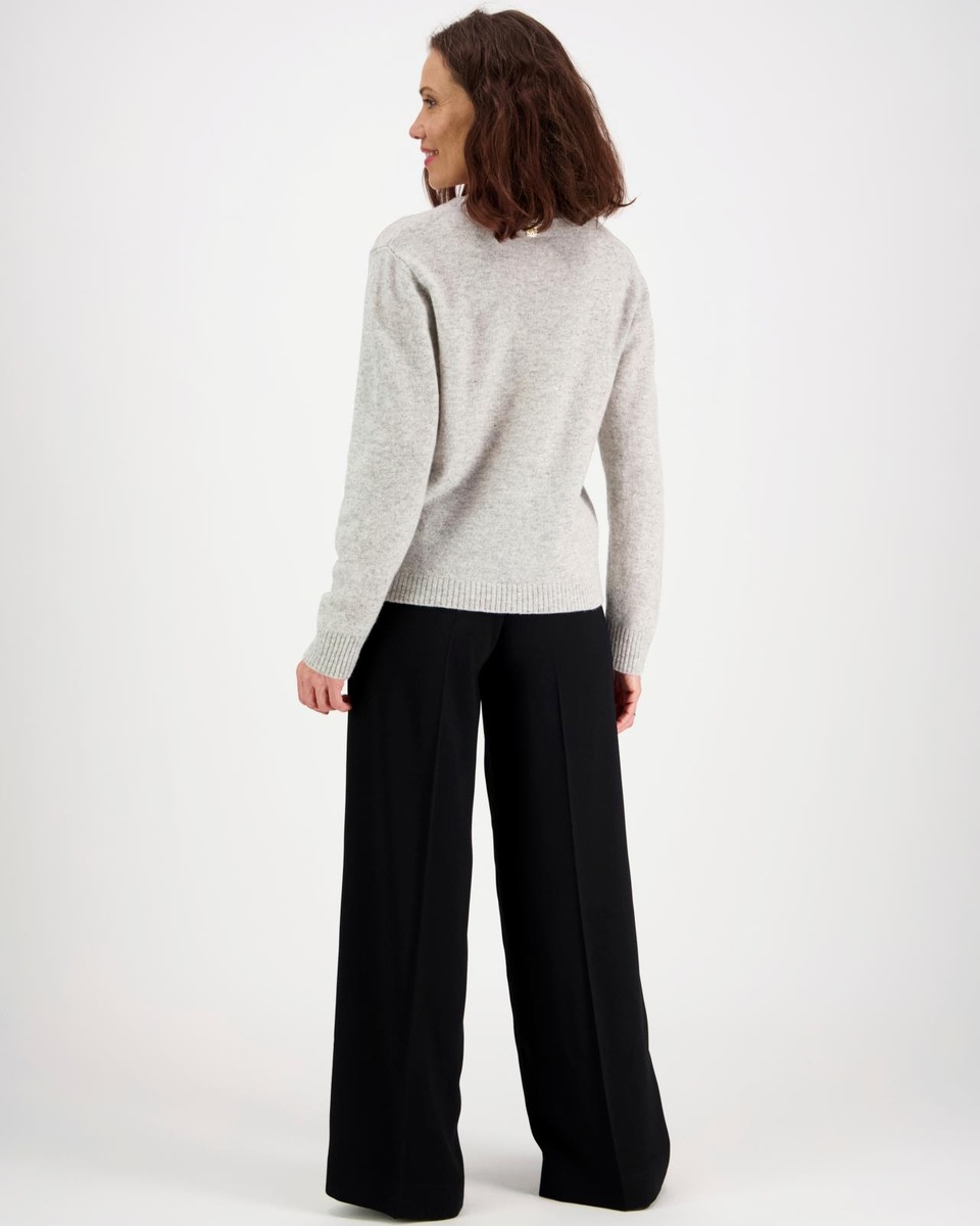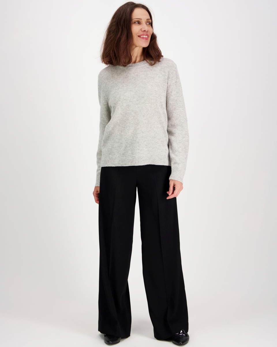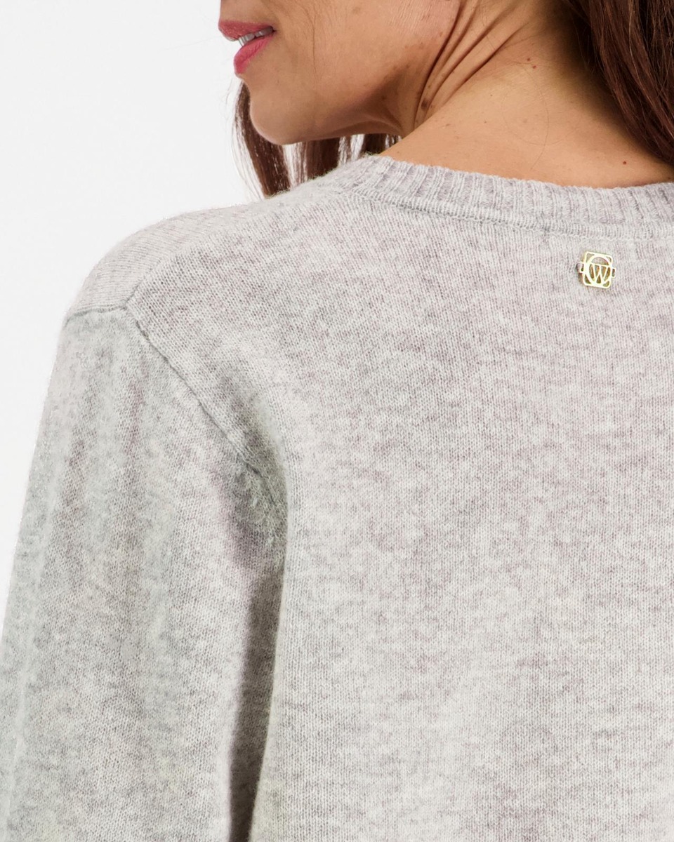 Neulospusero o-pääntiellä pehmeästä 100 % villasta. Neuleessa sirot resorit pääntiellä, helmalla ja hihojen suilla.