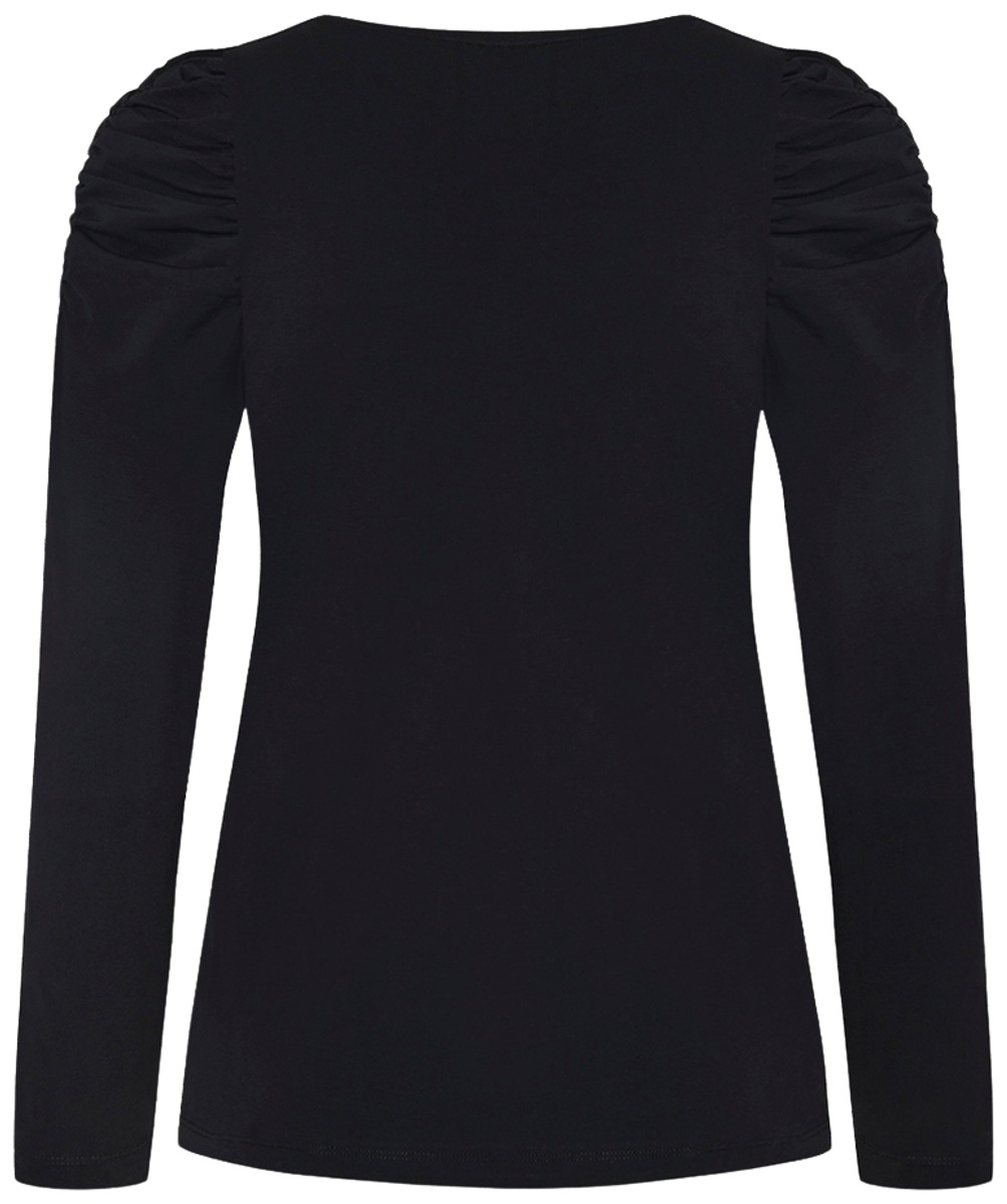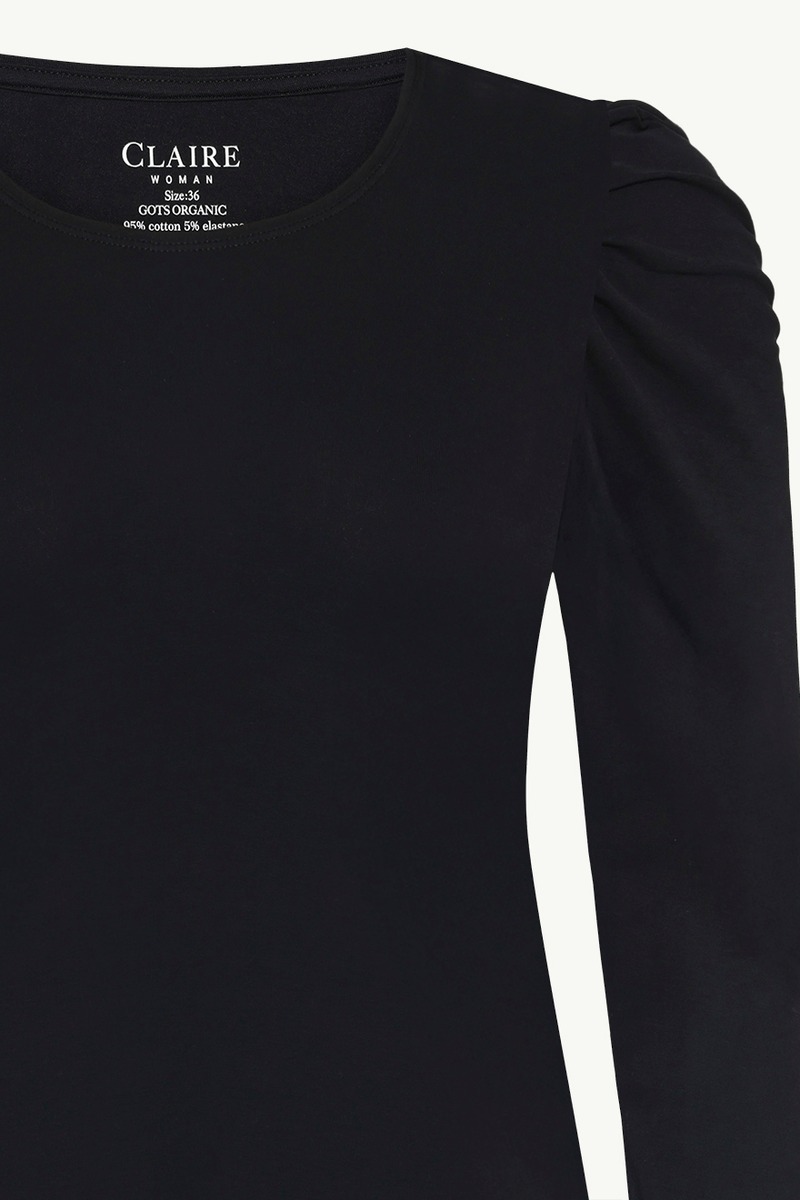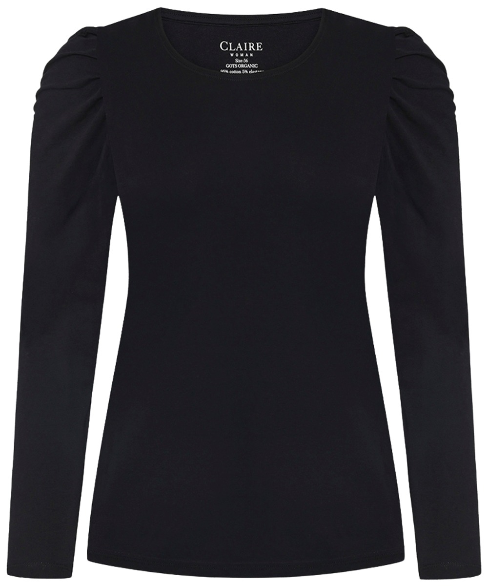Trikoopusero o-pääntiellä , jossa kauniit poimitukset pitkillä hihoilla. Materiaalina GOTS-sertifioitu puuvilla keveällä joustolla.