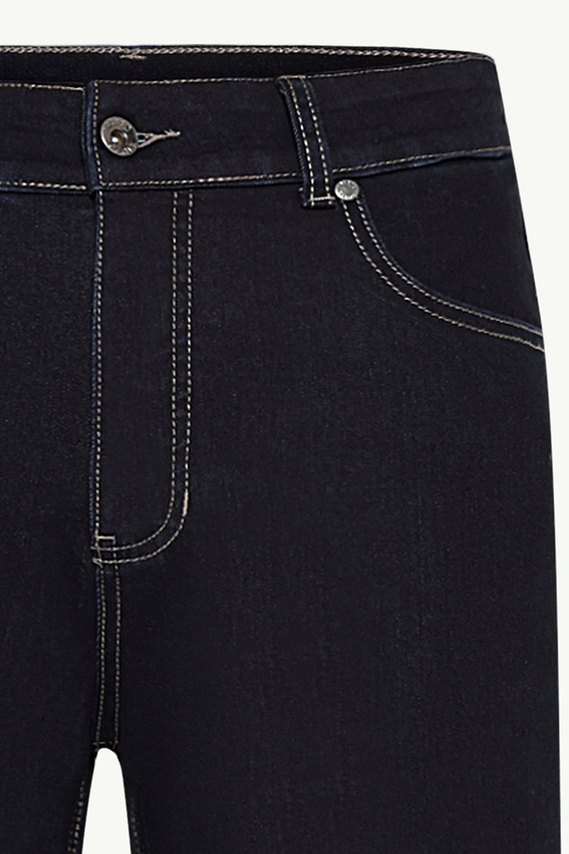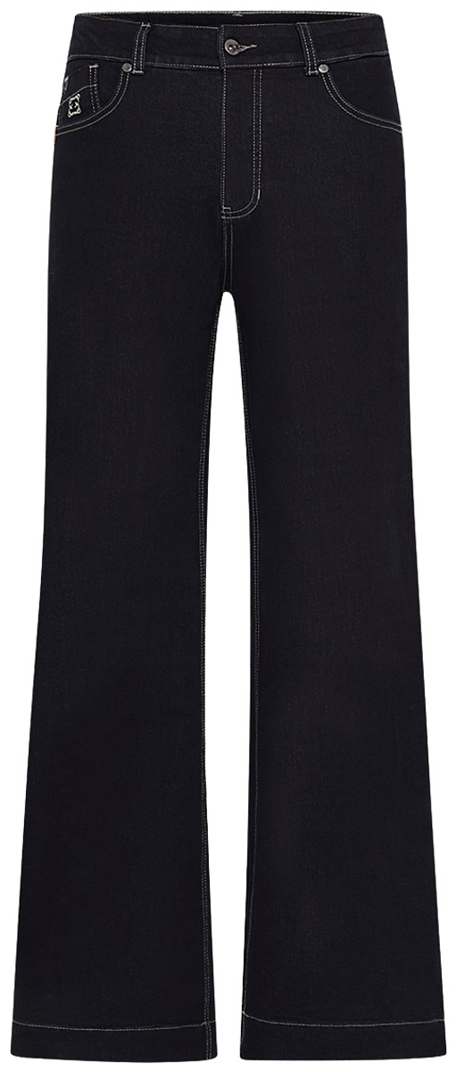 5-tasku farkku joustolla.Farkussa on keskikorkea vyötärö ja leveä lahje. Lahkeen suussa kaunis leveämpi ommel.