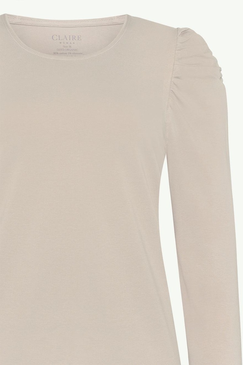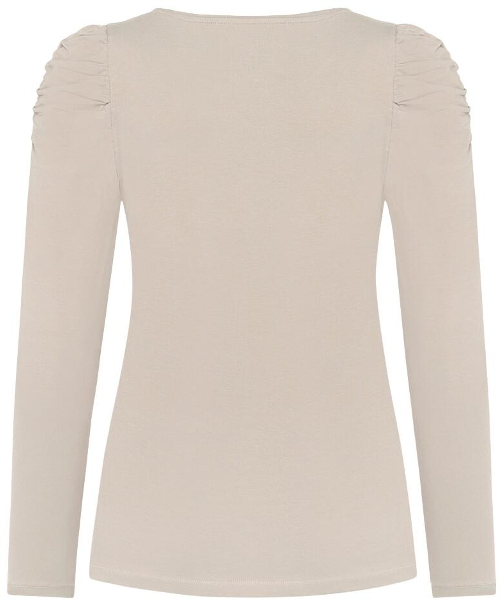 Trikoopusero o-pääntiellä , jossa kauniit poimitukset pitkillä hihoilla. Materiaalina GOTS-sertifioitu puuvilla keveällä joustolla.