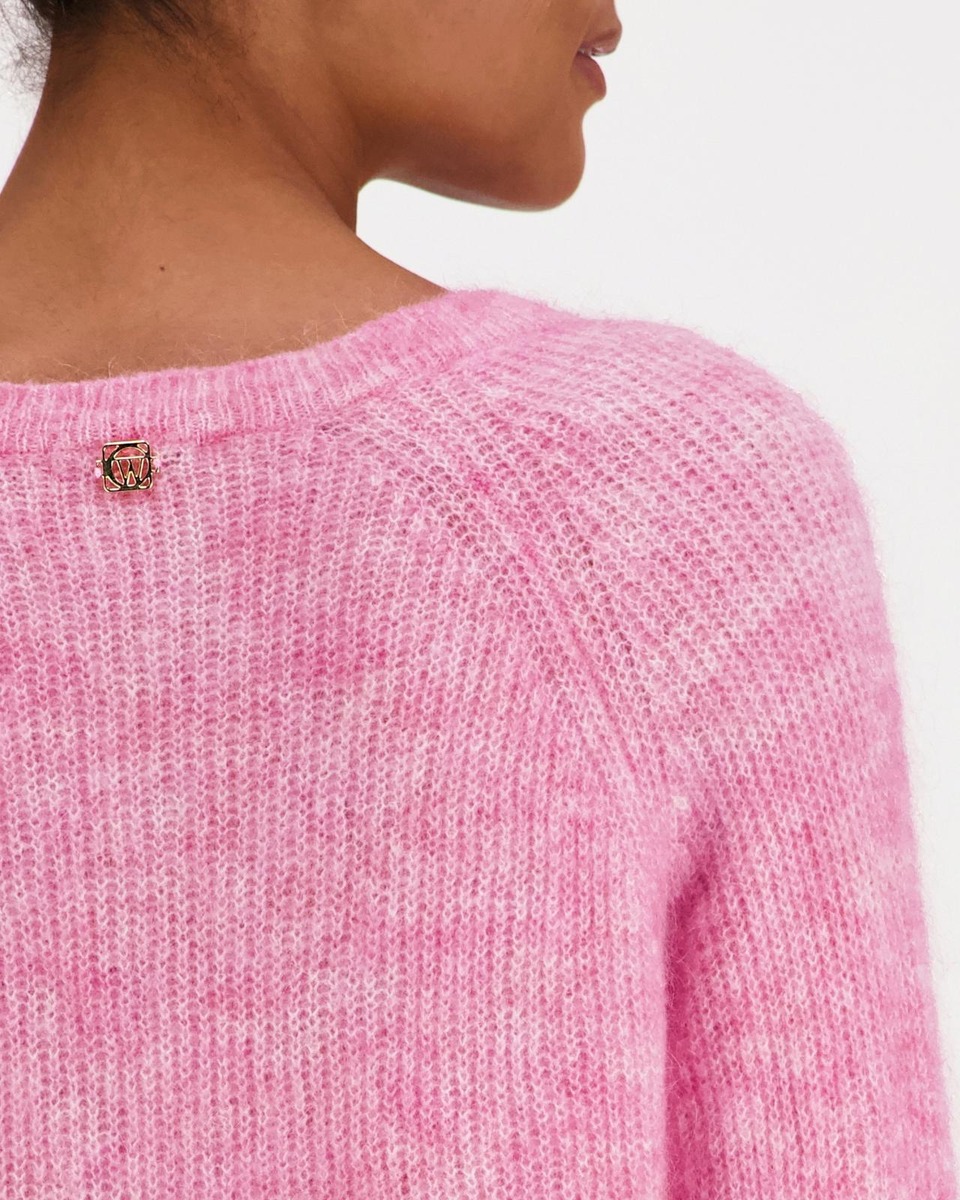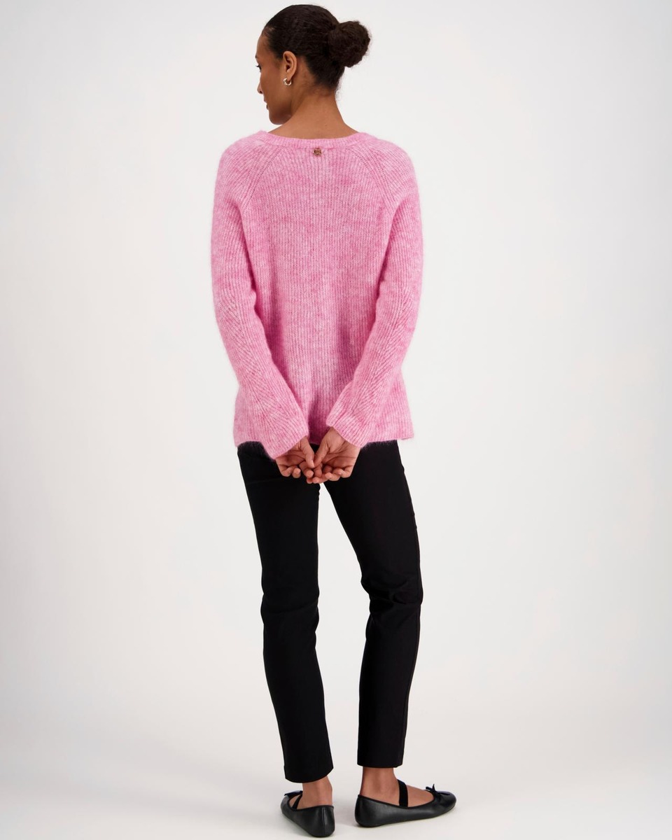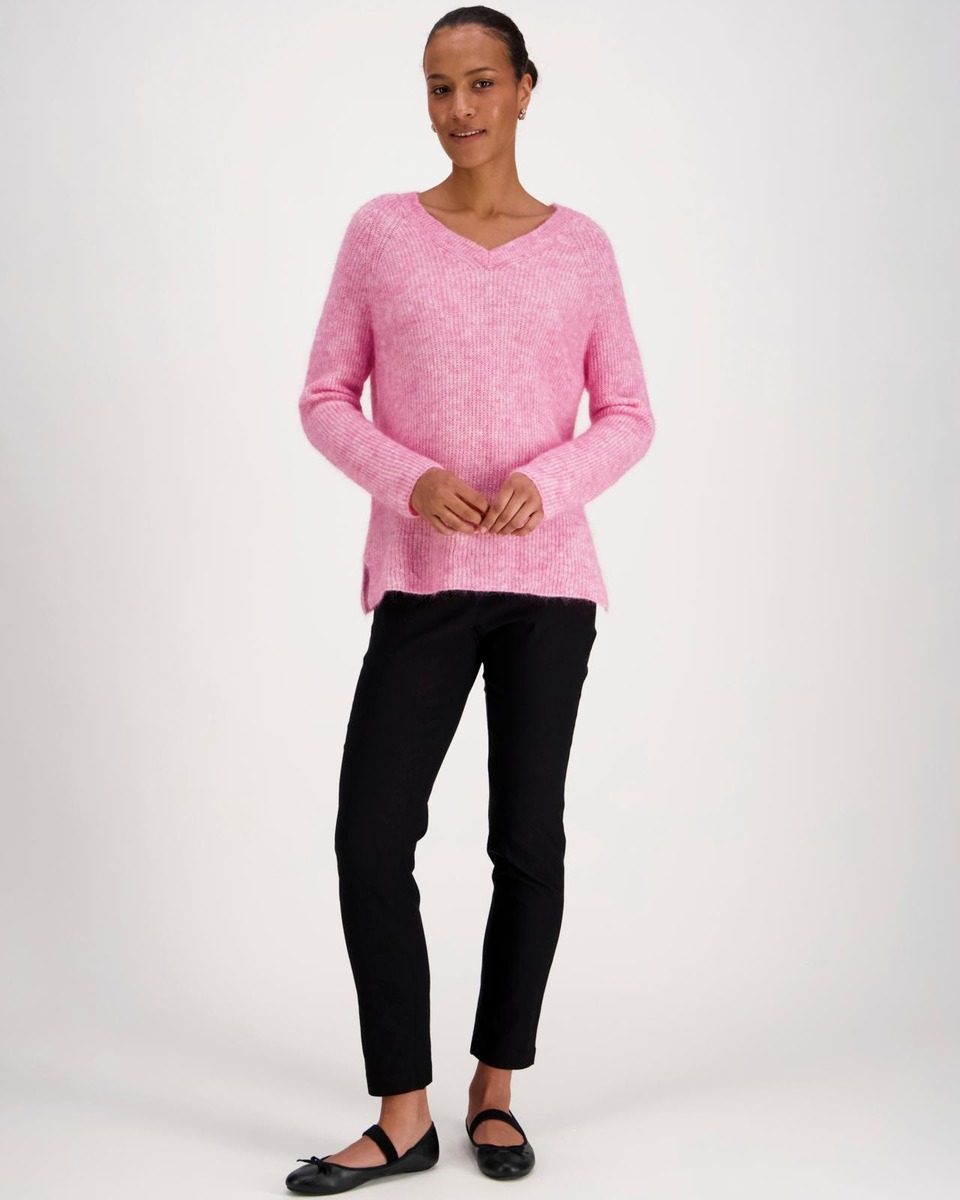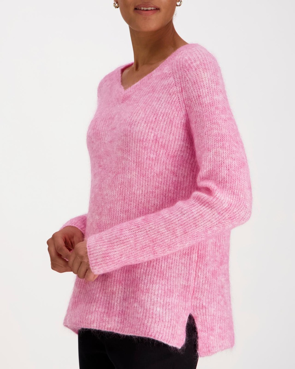 Mohairneule keveällä joustolla , kauniilla v-pääntiellä ja suoralla helmalla