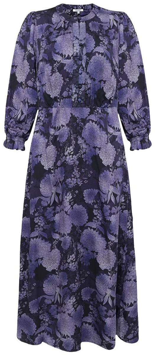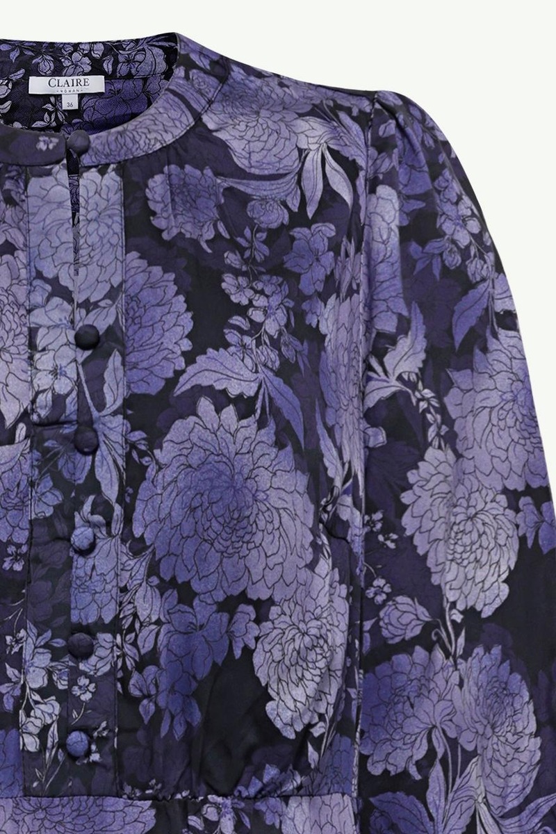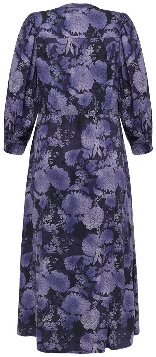 Kukkakuosillinen upea mekko Bamberg satiiniviskoosista. Edessä omalla päällikankaalla päällystetyt napit, vyötäröllä siro poikkileikkaus . 3/4 mittaiset hihat. Hihansuilla kaunis, joustava smockrypytys.