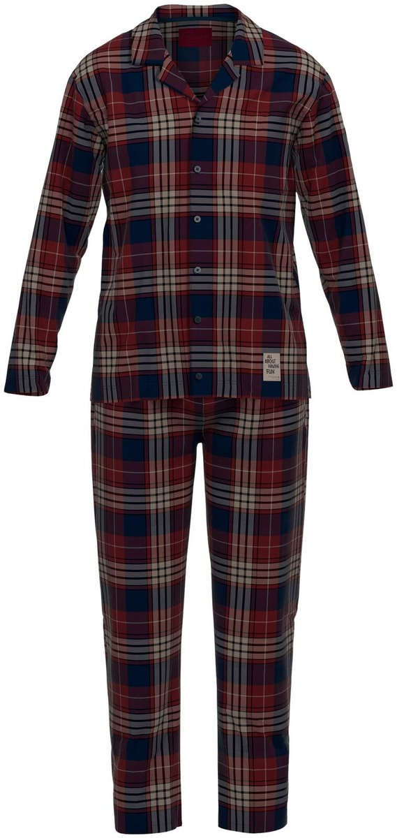 Miesten ruudullinen flanellipyjama. Napit edessä, housissa joustava vyötärö. Materiaali molemmin puolin harjattua pehmeää puuvillaflanellia, materiaali ei jousta.