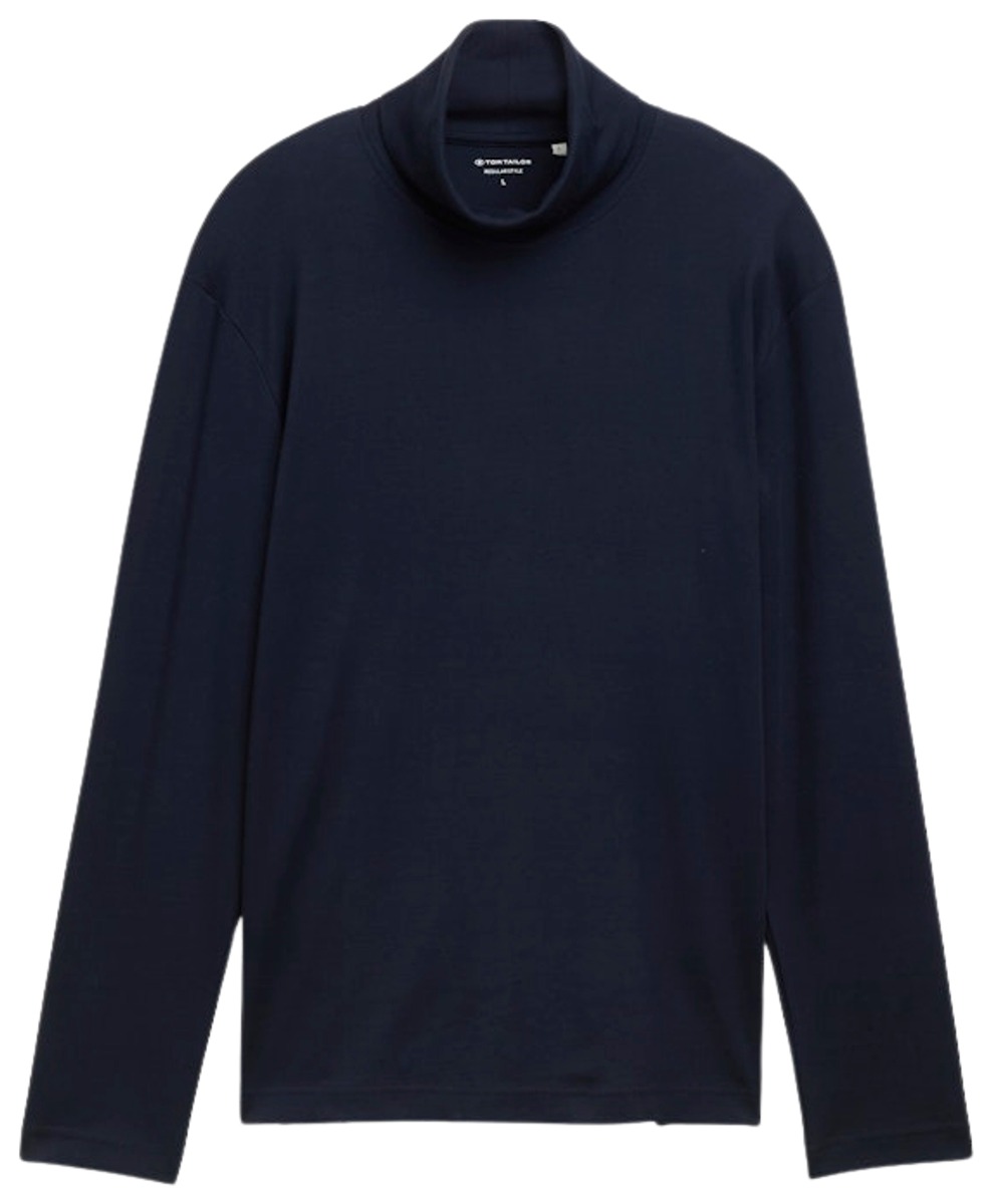 Miesten pitkähihainen t-paita ajattomalla rullapoolokauluksella, joustavaa puuvilla-elastaani neulosta.