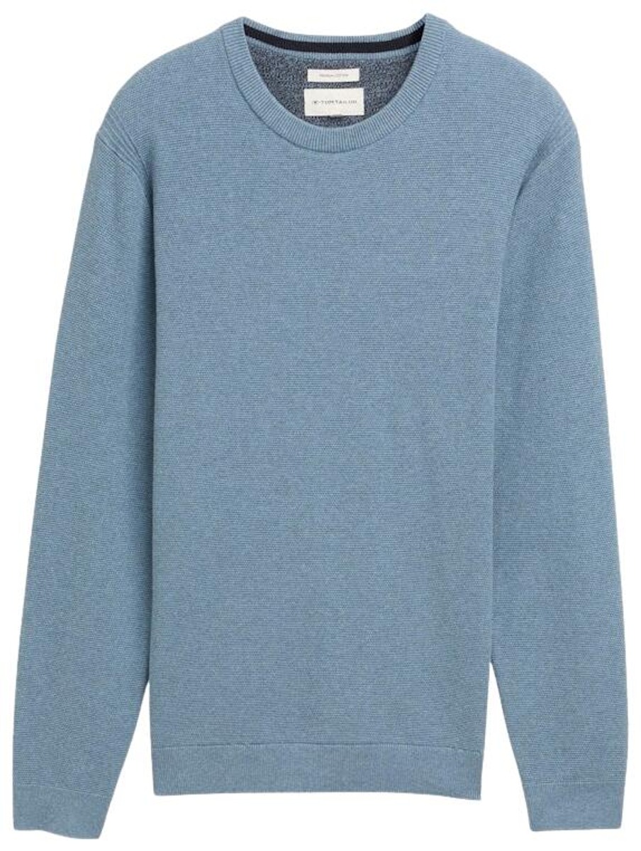 Miesten O-aukkoinen puuvillaneule. Valmistukseen käytetystä puuvillasta 50% on luomupuuvillaa.