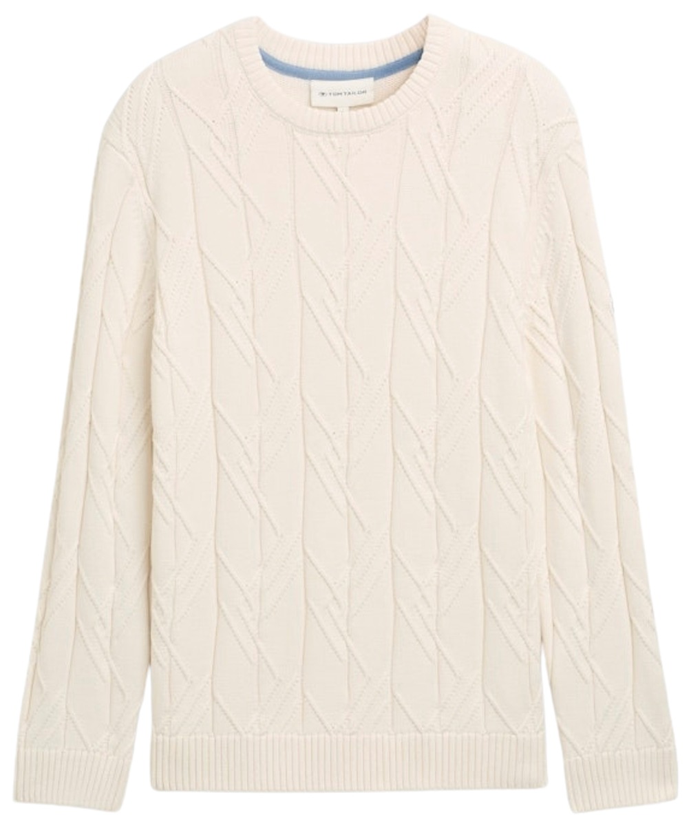 Miesten puuvillainen O-aukkoinen palmikkoneule.
