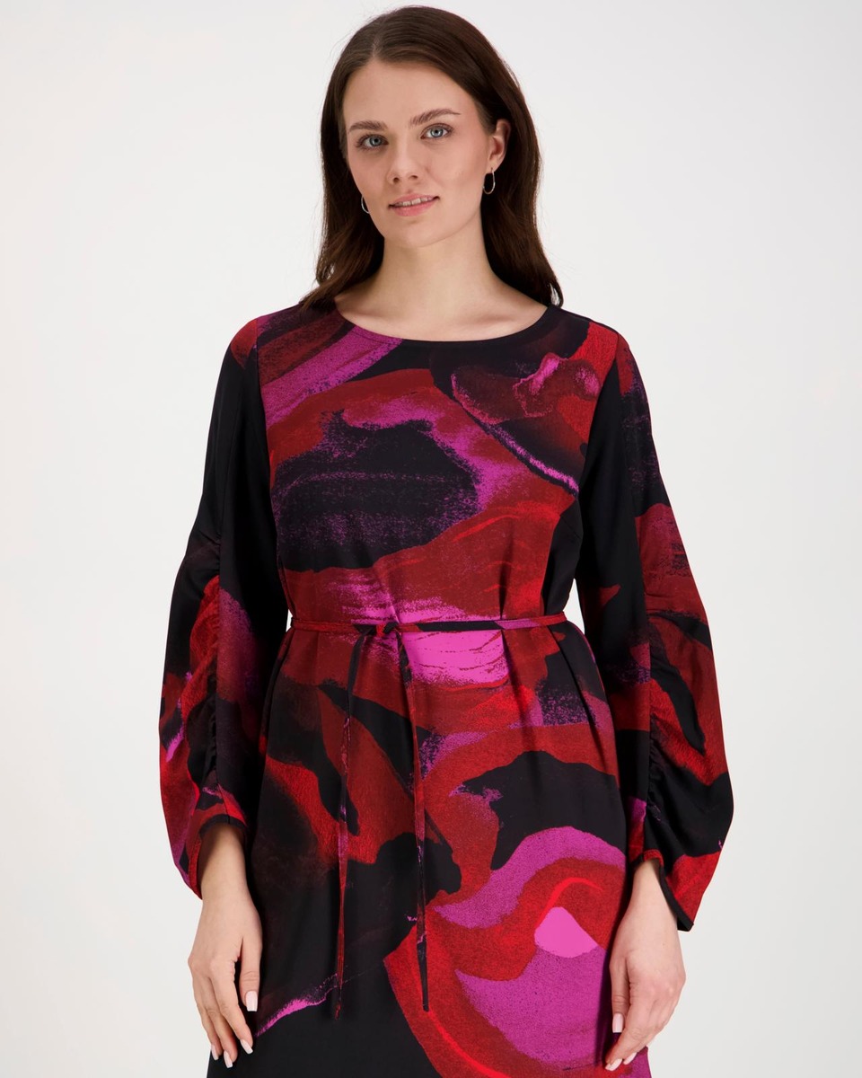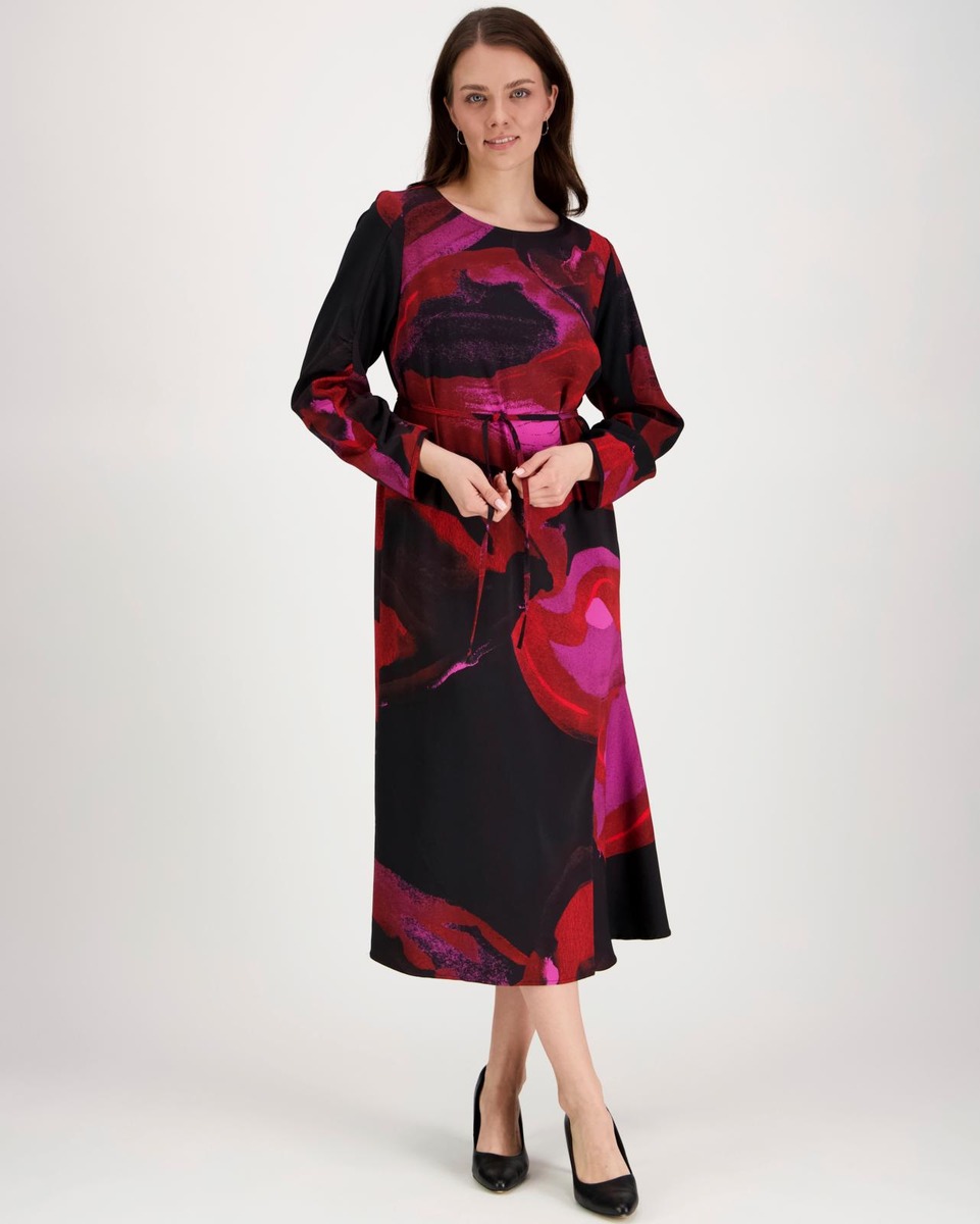 Kotimaisen Voglian kauniisti laskeutuvasta viskoosikankaasta ommeltu Lorraine-mekko on malliltaan hieman a-linjainen, ja sitä koristaa näyttävä Merihelmi-kuosi. Tämä suosikkiprintti on uudessa punaisessa värityksessään voimakas ja naisellinen. Lorraine-mekossa on irrotettava vyö, kauniit yksityiskohdat helmassa ja hihoissa sekä takaosassa on tyylikäs avaimenreikäyksityiskohta.