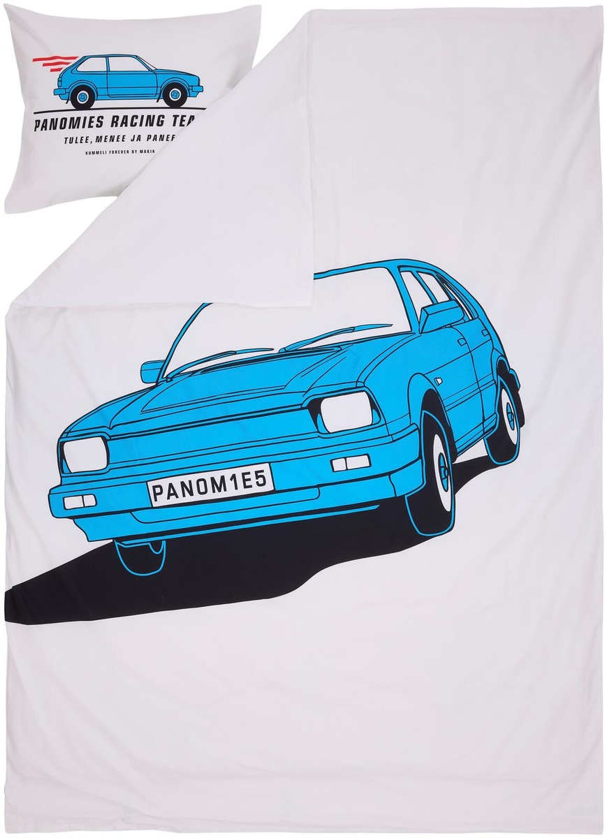 Tuolta hän tulee ja tuonne hän menee. Racing-pussilakanasetti on 100 % luomupuuvillasta valmistettu pussilakanasetti, joka on viimeistelty kunnianosoituksella korttelin siisteimmälle tyypille. Setin lankatiheys on 144 TC.