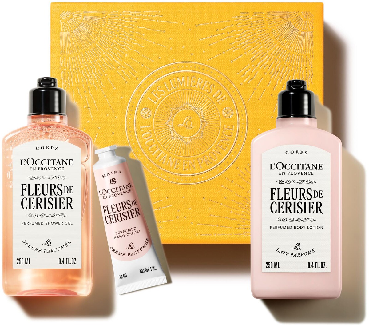 L’OCCITANE:n rakastettu Fleurs de Cerisier (kirsikankukka) sarja palaa uudella ilmeellä ja samalla ikonisella kukkaistuoksulla. Tämä elegantti lahjasetti sisältää: Shower Gel 250 ml, joka puhdistaa ihon hellävaraisesti ja jättää jälkeensä herkän kirsikankukkien tuoksun, ihoa kosteuttavan ja pehmentävän Body Lotion 250 ml sekä silkkisen Hand Cream 30 ml, joka ravitsee käsiä ja kietoo ne naiselliseen kukkaistuoksuun. Kaunis lahjapakkaus on täydellinen lahjaidea kaikille, jotka rakastavat ranskalaistyylisiä vartalontuotteita kukkaistuoksulla.