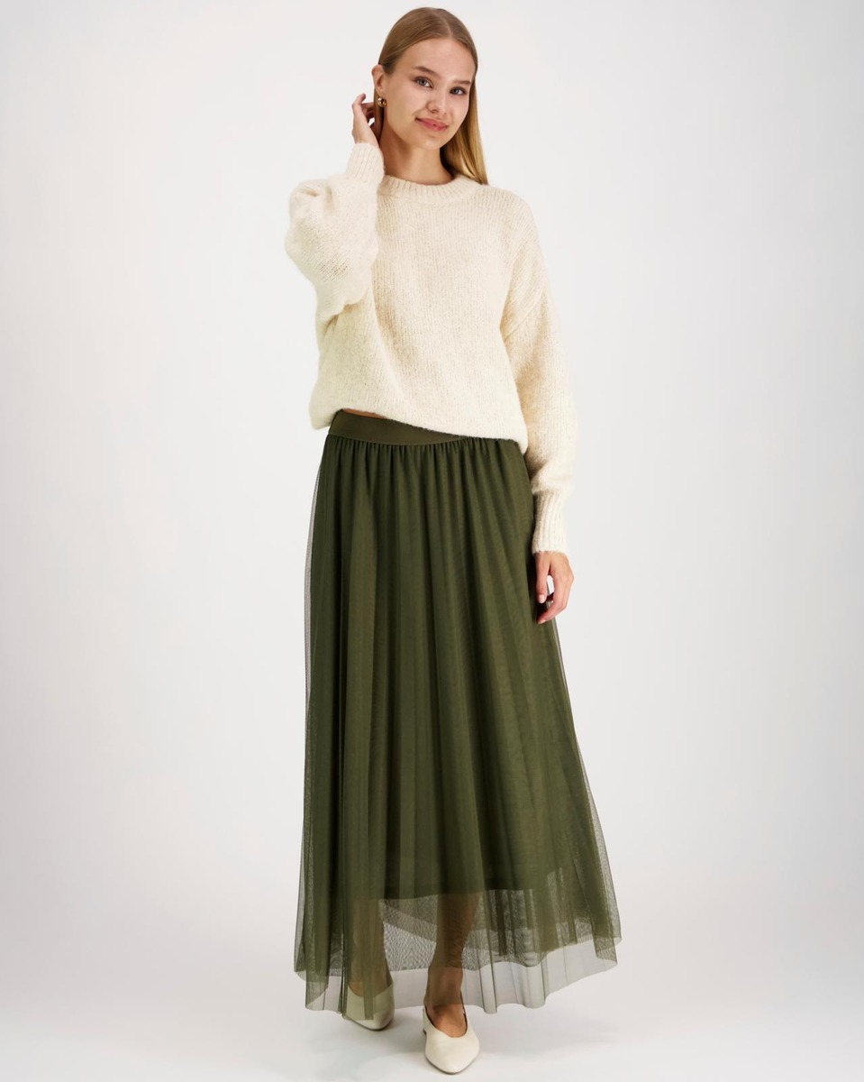 Monikäyttöinen mesh-hame, vyötäröllä kuminauha.