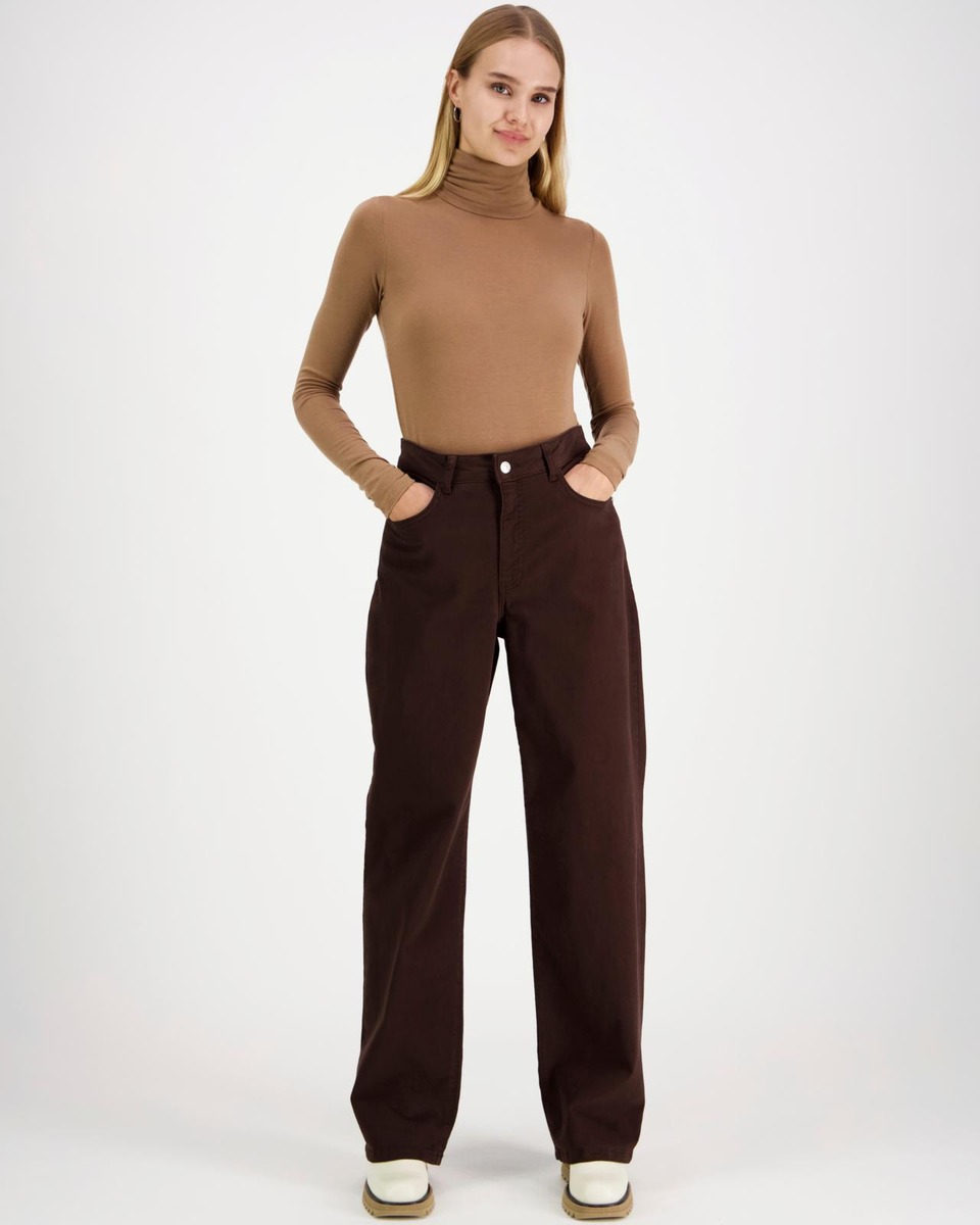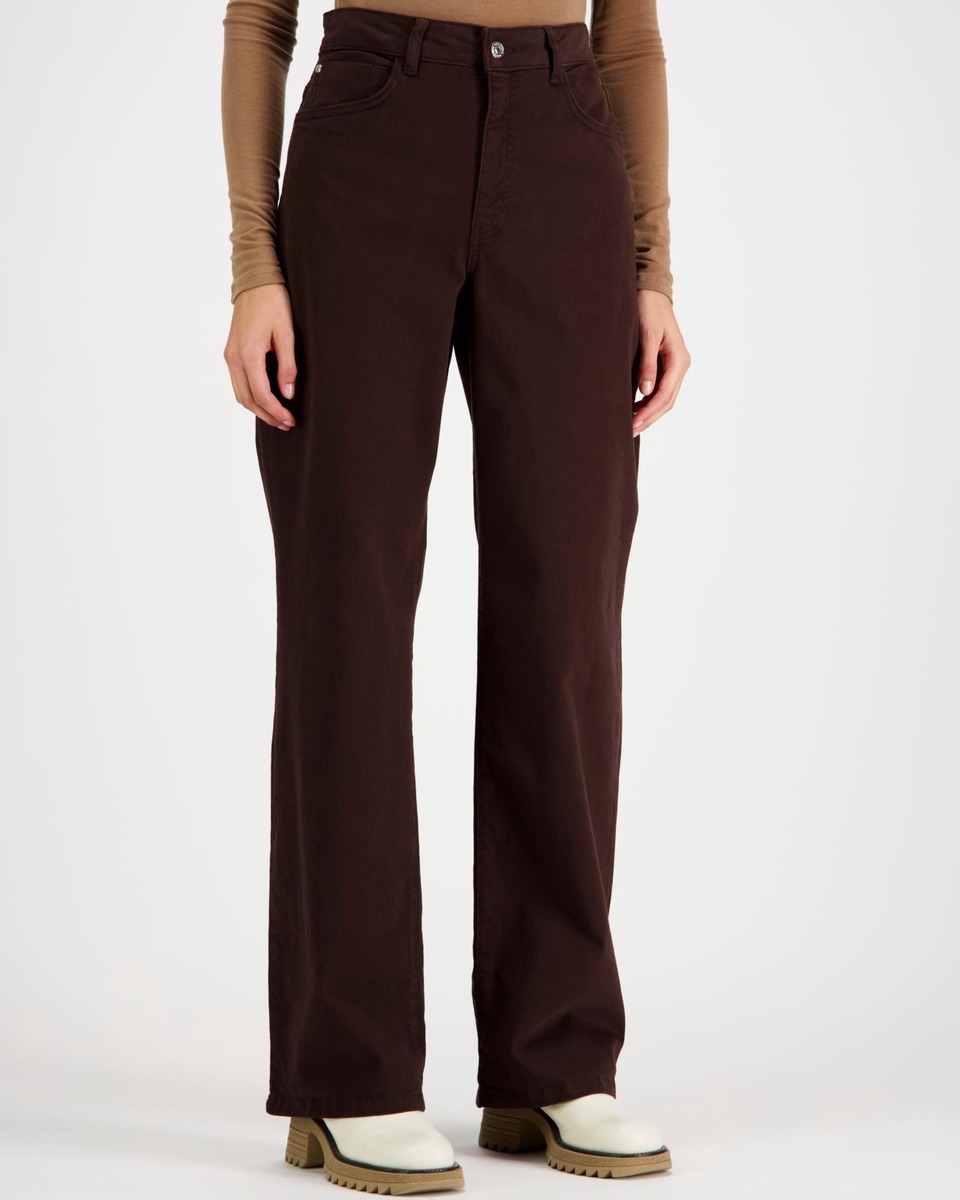 Leveät värilliset denim housut. Värinä muodikas espresso .