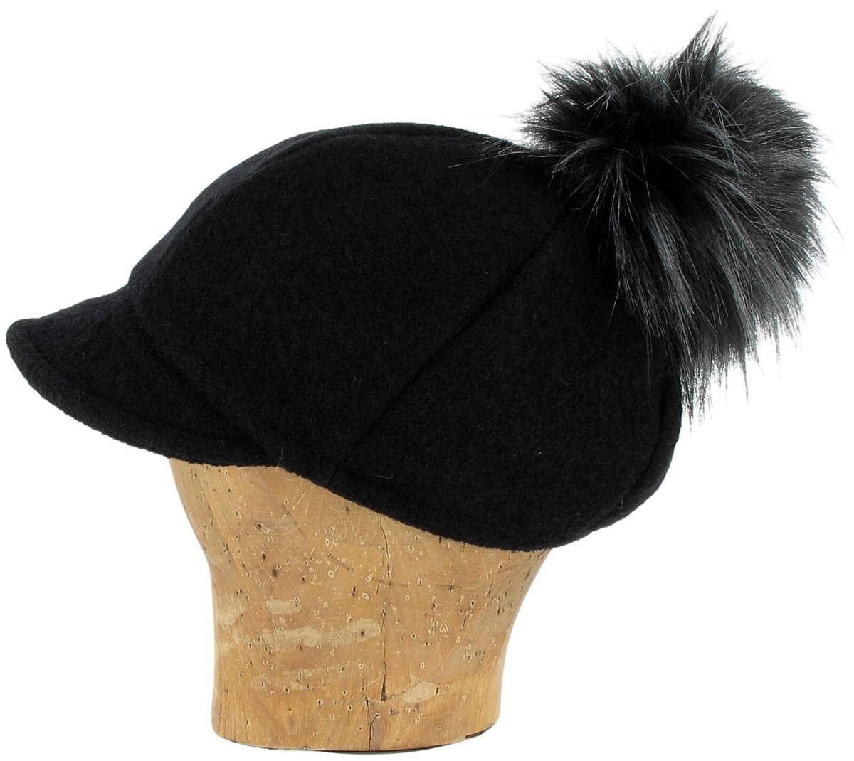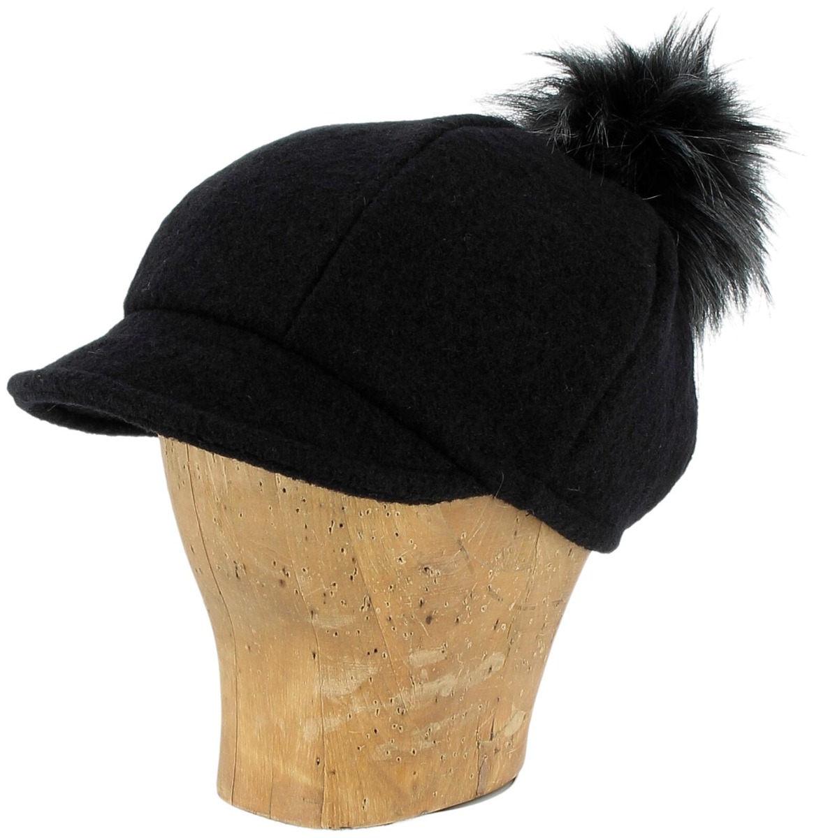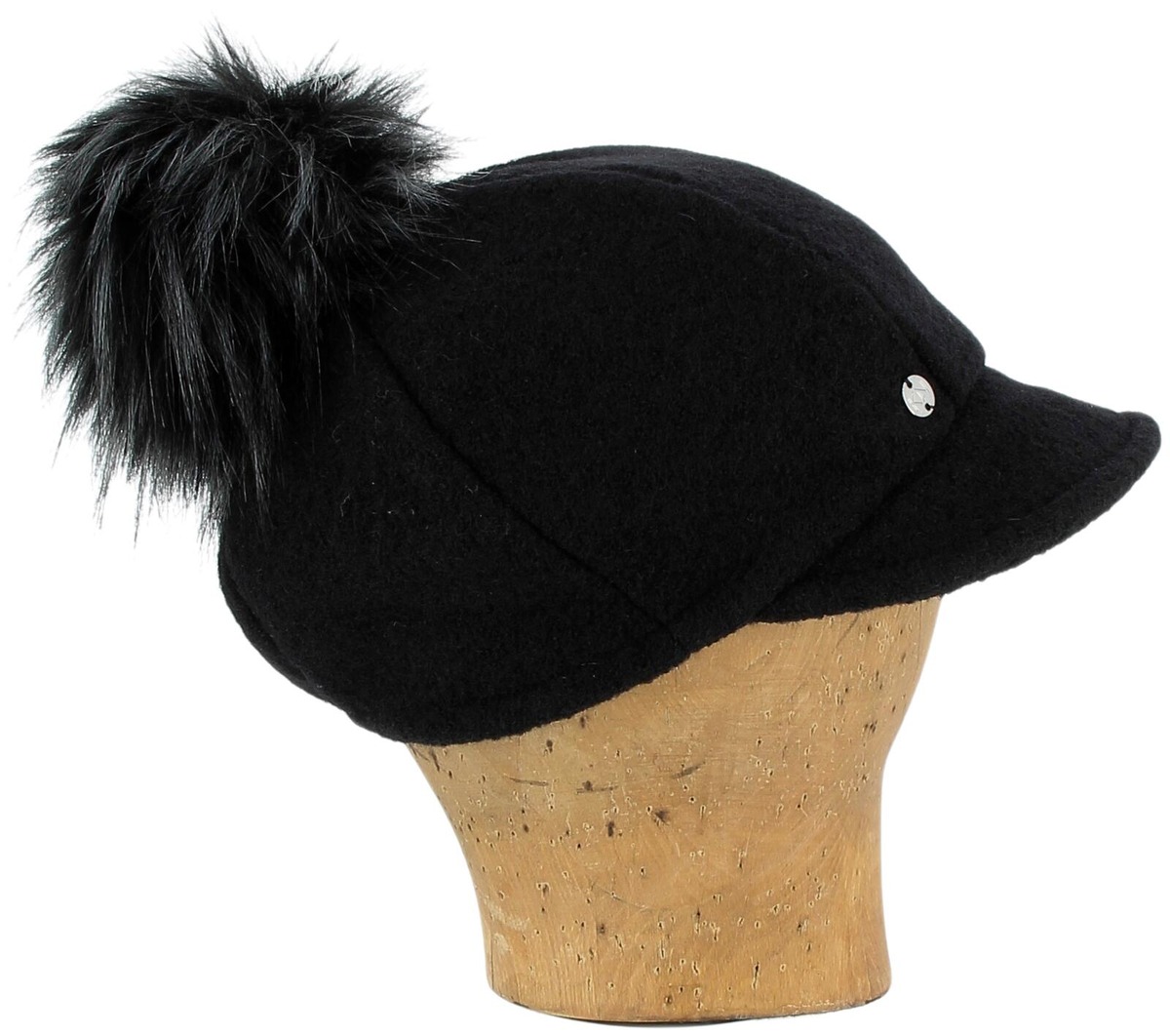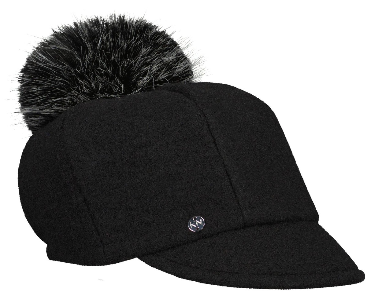 KN Kati Niemi Saaga on lipallinen villahattu naisille. Hatussa on pehmeä vuori ja tekoturkistupsu.