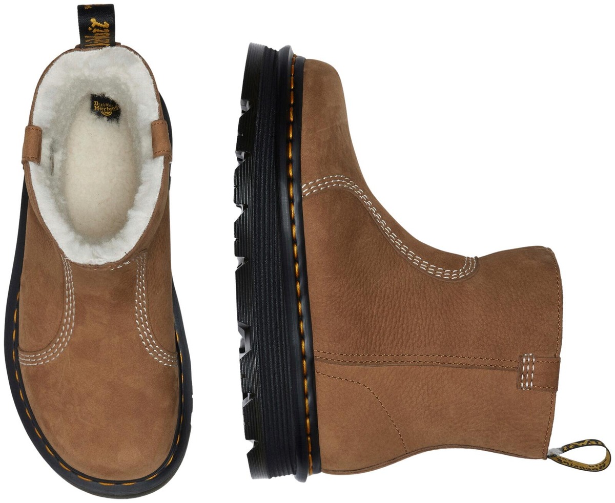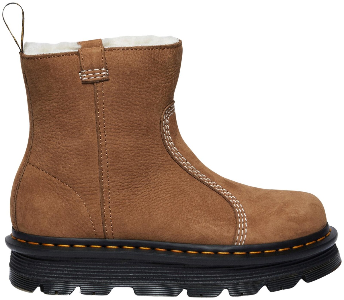 Dr Martens Riggerboot yhdistää ikonisen tyylin ja mukavuuden. Nämä saappaat tarjoavat lämpöä karvavuoren ansiosta, ja niiden kevyt zebzag-pohja tuo vakautta ja pitoa joka askeleelle.