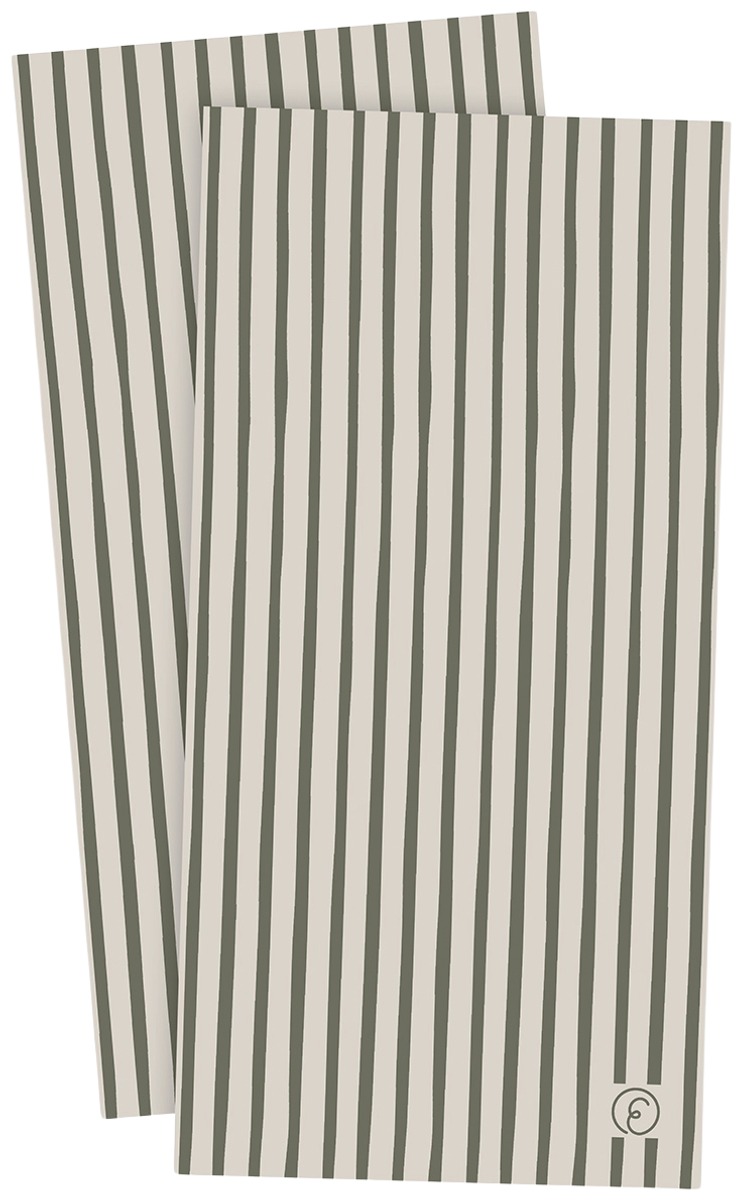 Viimeistele kattaus kauniilla ERNST paperiservieteillä vihreä-/vaaleanharmailla raidoilla. Servetin koko 40x40cm, koko taiteltuna 10x20cm.