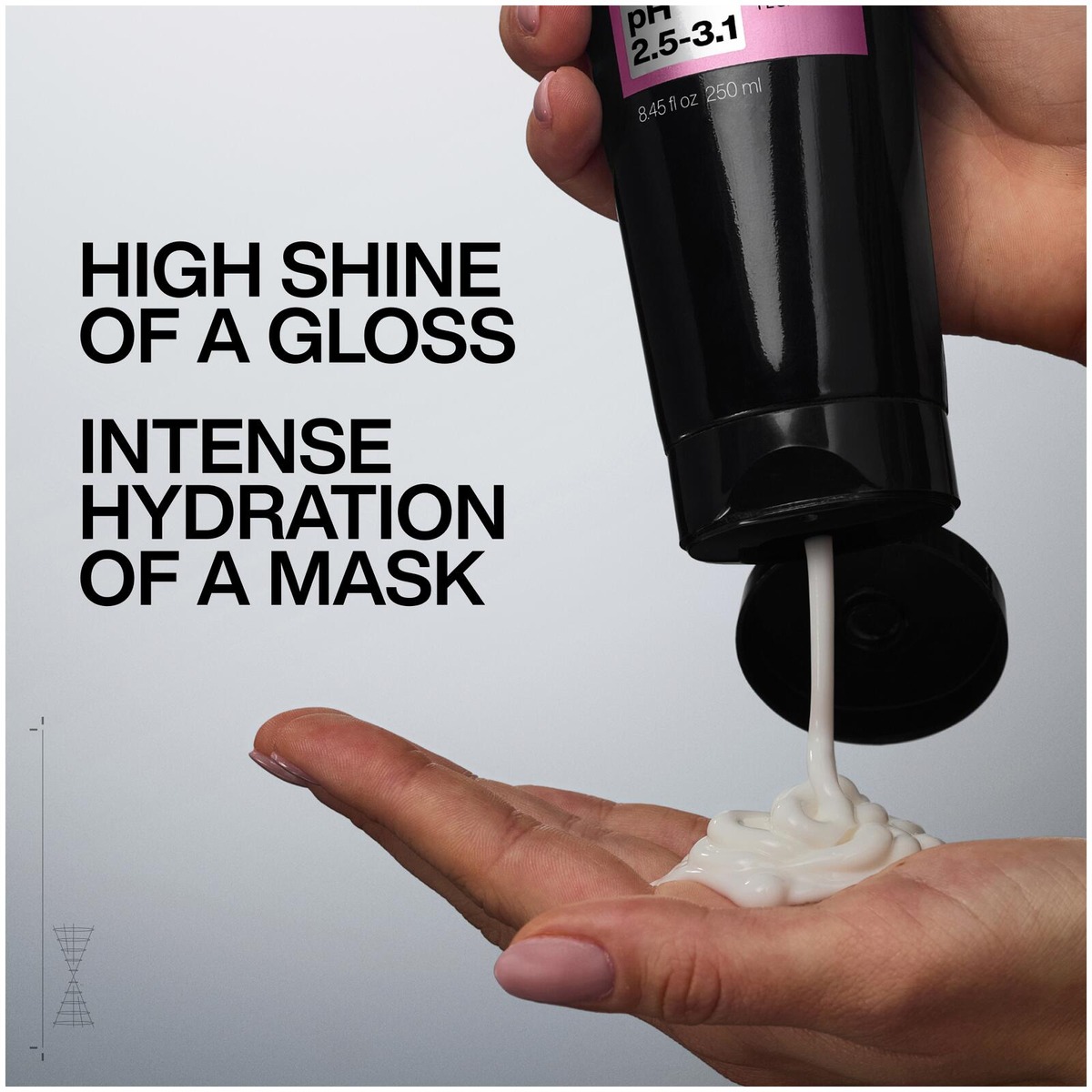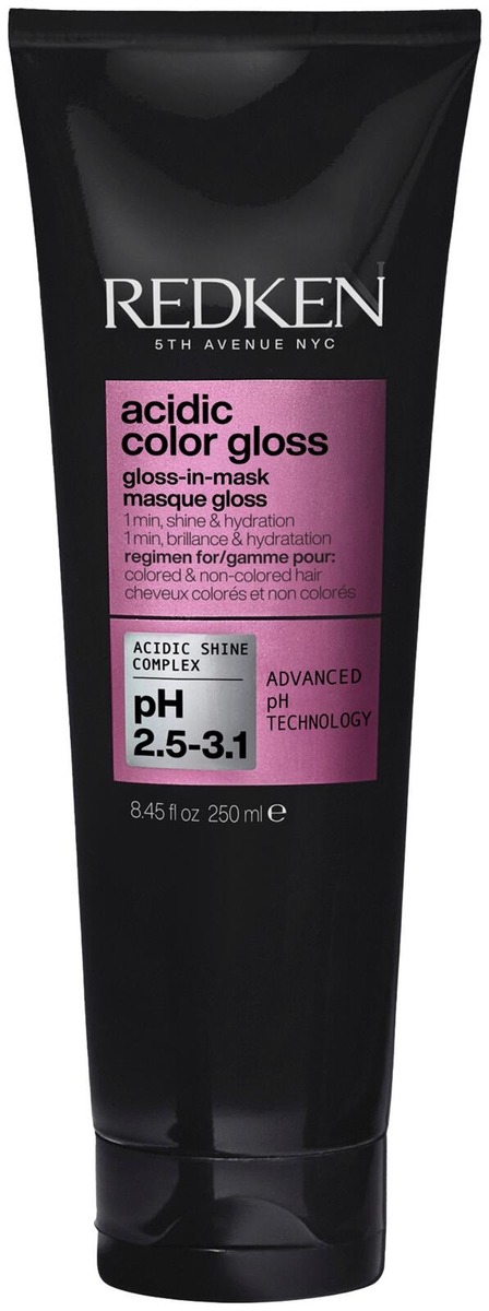 Redken Acidic Color Gloss 1-min Liquid Shine Mask hiusnaamio 250ml. Anna hiuksillesi upeaa kiiltoa ja syvää kosteutusta Redkenin hiusnaamion avulla. Tämä erittäin happamalla etikalla ja glyseriinillä varustettu koostumus poistaa hiuksiin kertyneitä jäämiä samalla kun se lisää syvää kosteutusta ja lukitsee kiillon, jotta hiukset ovat kosteutetut, kevyet ja elinvoimaiset. TÄRKEIMMÄT HYÖDYT: - 2x enemmän kiiltoa**. - 4x enemmän kosteutusta*** (EU). - 73% vähemmän kertymiä*: erittäin hapan koostumus poistaa jäämiä. *Instrumentaalinen testi ACG shampoo + Naamio vs. käsittelemättömät hiukset **Instrumentaalinen testi ACG shampoo + Naamio vs. pesemättömät hiukset ***Instrumentaalinen testi ACG shampoo + Naamio vs. hoitoaineeton shampoo