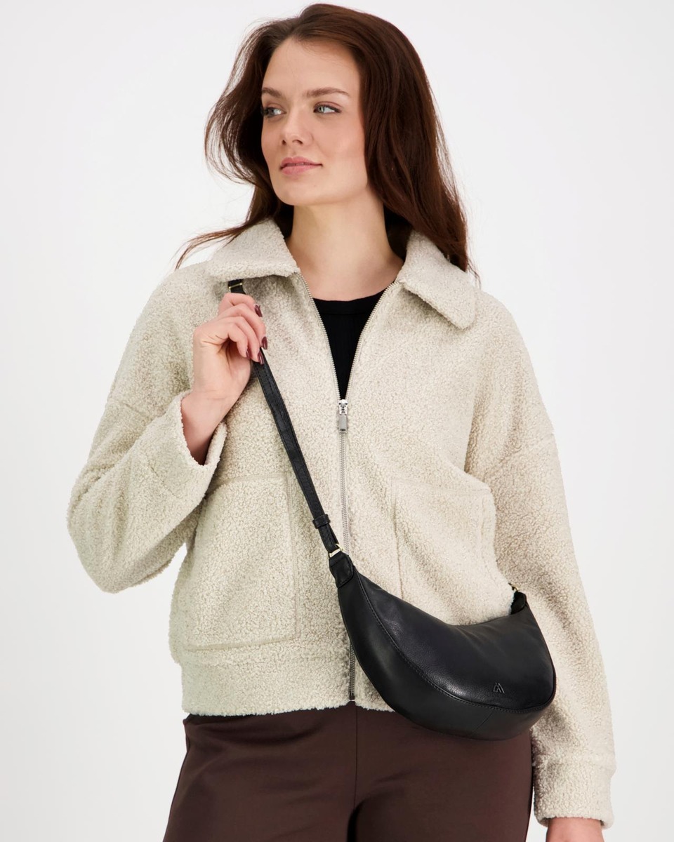Sisällä vetoketjutasku ja korttitasku. Säädettävä olkahihna.