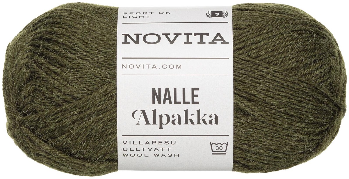 Rakastettuun Novita Nalle -tuoteperheeseen on tullut uusi ihastuttavan ylellinen uutuus. Novita Nalle Alpakka on hurmaavan pehmeä sukkalanka, joka sisältää 50 % lämmintä villaa, 30 % ylellistä alpakkaa ja 20 % kestävyyttä tuovaa polyamidia. Monikäyttöinen Nalle Alpakka-lanka sopii neulevaatteisiin ja asusteisiin ja se on erinomainen sukkalanka. Nalle Alpakka -langalle sopivat kaikki Novita Nalle -langalle laaditut neuleohjeet. M-kokoiseen neuleeseen tarvitaan lankaa noin 500 grammaa lankaa. Novita Nalle Alpakka -langasta valmistettujen tuotteiden pesuohje on 30 astetta villapesuohjelmalla. Puikkosuositus on 3.5 mm, sukkiin puikot 3 mm. 50 gramman kerässä on 145 metriä lankaa. Neuletiheys 10x10cm on 22 silmukkaa ja 32 kerrosta tai käsialasta riippuen. Novita Nalle Alpakka -lanka on Avainlipputuote.
