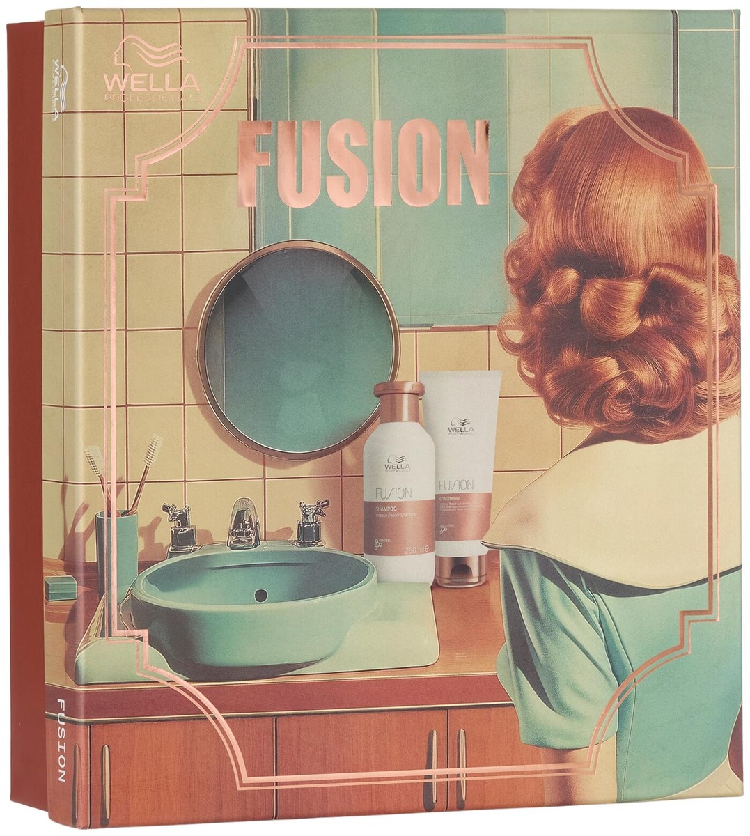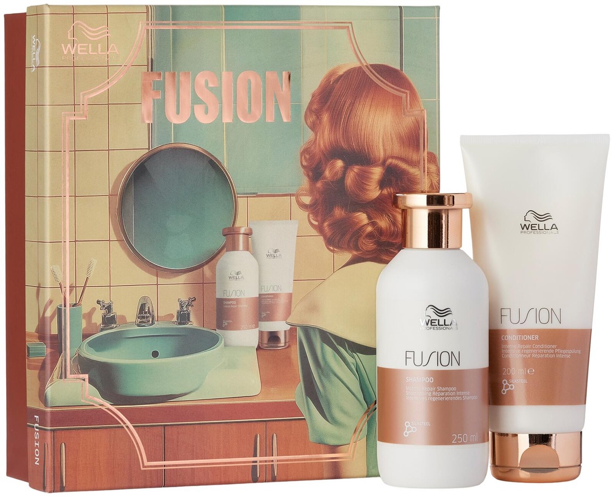 Wella Fusion lahjapakkaus kuiville ja karkeille hiuksille sisältää Fusion Shampoo 250ml ja Fusion Conditioner 200ml.