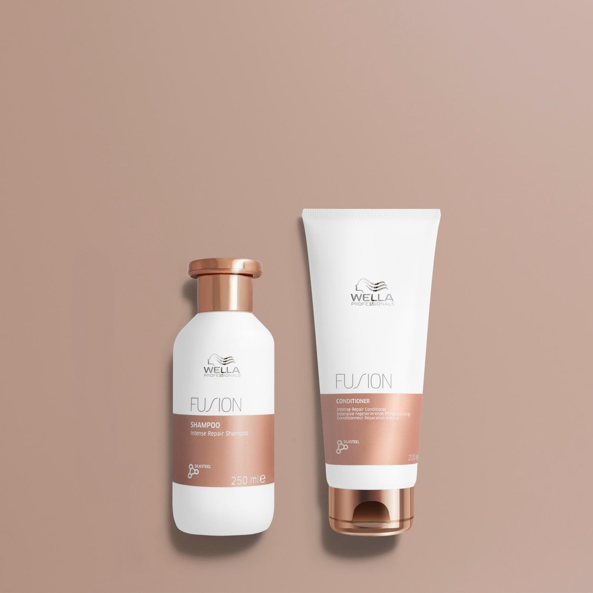 Saat sileämmät ja vahvemmat hiukset Wella Professionals Fusion Intense Repair -hoitoaineella. Tämä ammattitasoinen hoitoaine on tarkoitettu erityisesti vaurioituneille hiuksille. Se auttaa suojaamaan hiuksia kampaamisesta johtuvalta katkeilulta ja estää vauriot jatkossakin. Silkkiaminohappoja sisältävä Wella Fusion -hoitoaine suojaa hiuksia mekaanisilta vaurioilta ja vahvistaa niitä katkeilua vastaan.