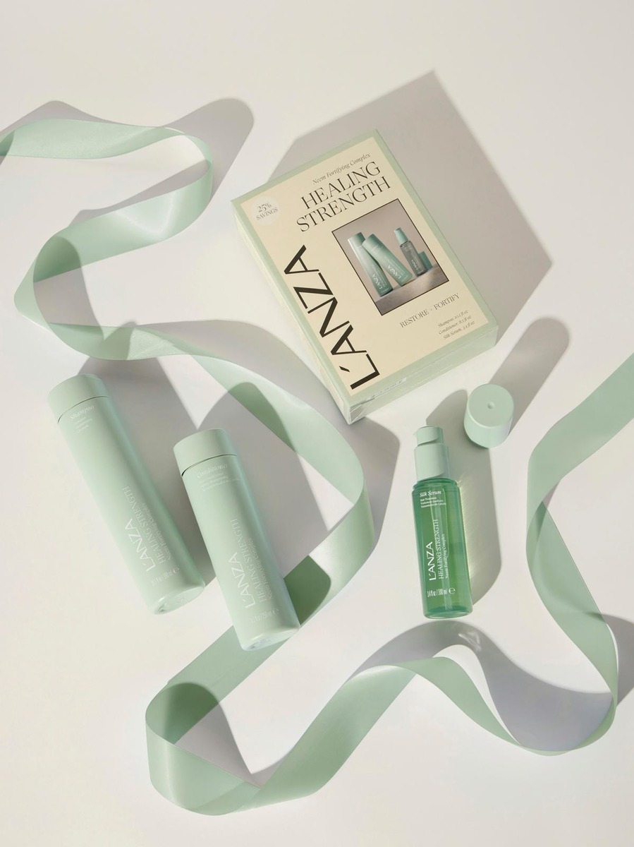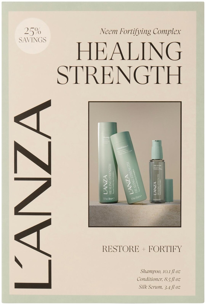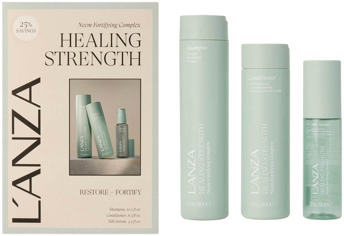 Healing Strength Shampoo|water (aqua), sodium c14-16 olefin sulfonate, sodium lauroyl methyl isethionate, cocamidopropyl betaine, sodium lauroyl lactylate, hydrolyzed pea protein, hydrolyzed vegetable protein, melia azadirachta seed oil, entada phaseoloides bark/seed extract, camellia sinensis leaf extract, dimethiconol cysteine, sodium hyaluronate, limnanthes alba (meadowfoam) seed oil, sodium pca, magnesium pca, zinc pca, manganese pca, squalane, ethylhexyl olivate, ascorbic acid, sorbic acid, chlorphenesin, benzoic acid, glycerin, pentaerythrityl tetra-di-t-hydroxyhydrocinnamate, glycol distearate, ethylhexylglycerin, silicone quaternium-3, trideceth-12, guar hydroxypropyltrimonium chloride, tris(tetramethylhydroxypiperidinol) citrate, peg-150 distearate, citric acid, sodium hydroxide, sodium chloride, alcohol, phenoxyethanol, caprylyl glycol, potassium sorbate, sodium benzoate, benzisothiazolinone, fragrance (parfum), hydroxycitronellal, limonene, linalool||Healing Strength Conditioner |water (aqua), cetyl alcohol, stearyl alcohol, dimethicone, glycerin, hydrolyzed pea protein, hydrolyzed vegetable protein, melia azadirachta seed oil, dimethiconol cysteine, ceramide np, camellia sinensis leaf extract, ascorbic acid, sodium hyaluronate, limnanthes alba (meadowfoam) seed oil, sodium pca, magnesium pca, zinc pca, manganese pca, squalane, ethylhexyl olivate, steartrimonium chloride, cetrimonium chloride, trimethylsiloxyamodimethicone, dimethiconol, guar hydroxypropyltrimonium chloride, phenoxyethanol, ethylhexylglycerin, peg-150 distearate, c11-15 alketh-7, c12-16 alketh-9, trideceth-12, tris(tetramethylhydroxypiperidinol) citrate, pentaerythrityl tetra-di-t-butyl hydroxyhydrocinnamate, citric acid, sodium benzoate, potassium sorbate, caprylyl glycol, isopropyl alcohol, alcohol, fragrance (parfum), hydroxycitronellal, limonene, linalool||Healing Strength Silk Serum|cyclopentasiloxane, dimethicone, caprylyl methicone, phenyl trimethicone, melia azadirachta seed oil, melia azadirachta extract, hydrolyzed pea protein, hydrolyzed vegetable protein, dimethiconol cysteine, ceramide np, sodium hyaluronate, dimethiconol meadowfoamate, sodium pca, magnesium pca, manganese pca, zinc pca, hordeum distichon (barley) extract, phellodendron amurense bark extract, santalum album (sandalwood) extract, citrus limon (lemon) fruit extract, fumaria officinalis flower/leaf/stem extract, helianthus annuus (sunflower) seed oil, squalane, fumaric acid, trimethylsiloxyamodimethicone, tetrahexyldecyl ascorbate, water (aqua), quaternium-95, benzotriazolyl dodecyl p-cresol, butylene glycol, propylene glycol, propanediol, caprylyl glycol, ethylhexylglycerin, potassium sorbate, sodium benzoate, phenoxyethanol, sorbic acid, chlorphenesin, isopentyldiol, pentaerythrityl tetra-di-t-butyl hydroxyhydrocinnamate, pvp, benzoic acid, fragrance (parfum), linalool, benzyl salicylate, coumarin, limonene, geraniol, alpha-isomethyl ionone, citronellol, hydroxycitronellol