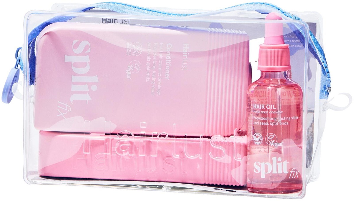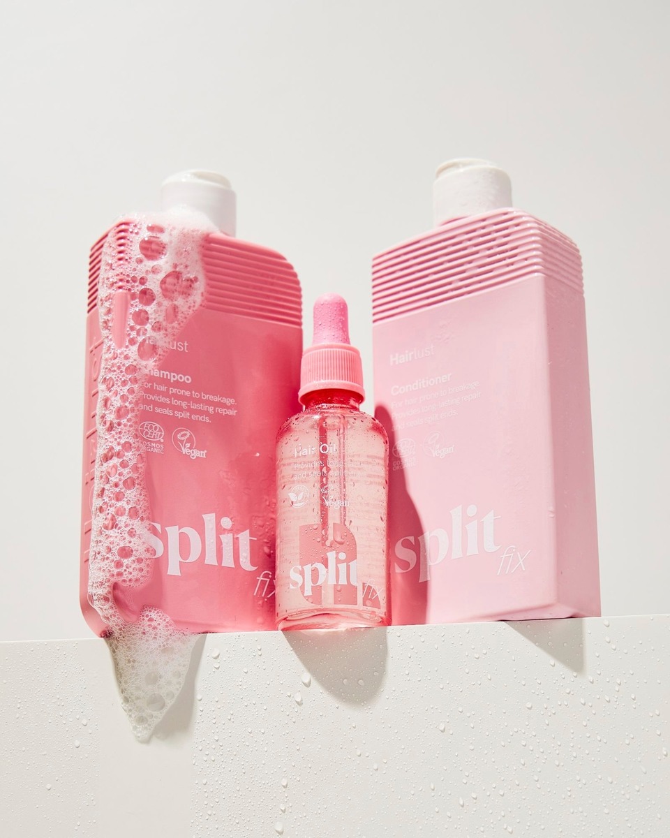 Hairlust Split Fix -lahjapakkaus sisältää kosteuttavan ja suojaavan shampoon, hoitoaineen ja hiusöljyn vaurioituneille, hauraille ja katkeileville hiuksille. Nämä ravitsevat ja hellävaraiset tuotteet tehohoitavat hiuksia suojaten niitä vaurioilta.