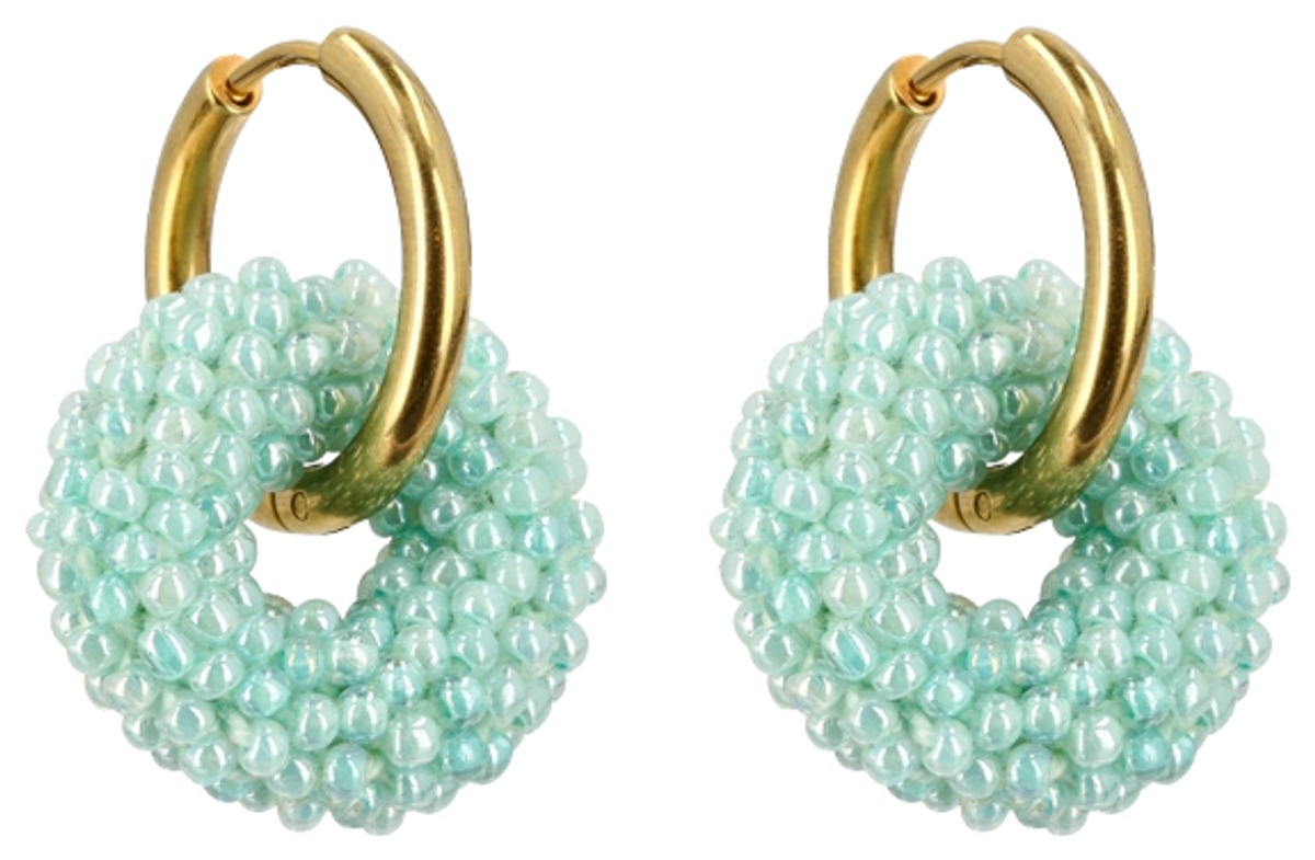 Upeat Veda-korvakorut on valmistettu käsityönä. Korvakorut on punottu lasihelmistä ja niiden rengasosa on kestävää ruostumatonta terästä. Osat ovat irrotettavat. Korun koko pituus on noin 3cm.