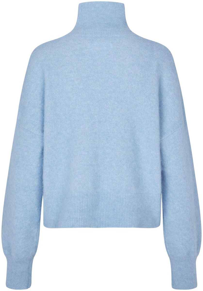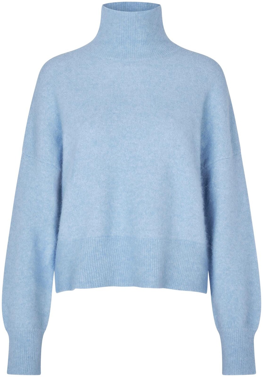 Samsøe Samsøen alpakka-merinovillasekoitteinen vaaleansininen polo neule. Korkea, väljä pääntien ja normaali istuvuus sekä pituus. Materiaali on yhdistelmä ylellistä alpakkaa ja pehmeää merinovillaa. Neule tuntuu pehmeältä eikä kutita ihoa. Vastuullisesti valmistettu neulepaita, mikä kestää aikaa ja käyttöä