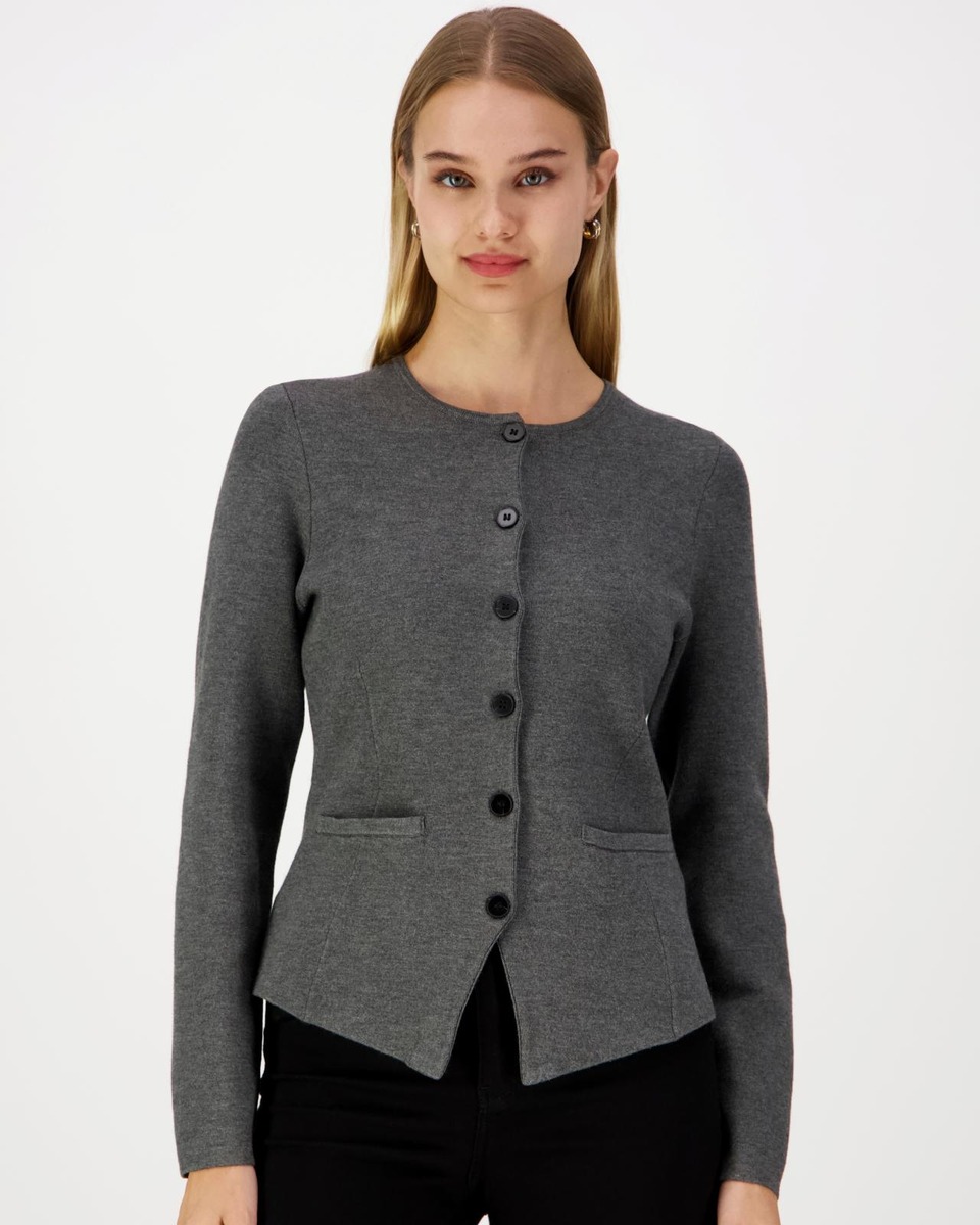 Samsøe Samsøen neulottu viskoosijakku. Takissa on pyöreä pääntie ja se on tyköistuva. Takin etuosassa on pyöreät napit ja helmassa viistoon menevä leikkaus, mikä luo neuletakille jakkumaisen ilmeen. Pehmeä ja hengittävä viskoosijakku sopii niin arkeen kuin juhlaa, ja on helppo yhdistää hameen sekä housujen kanssa.