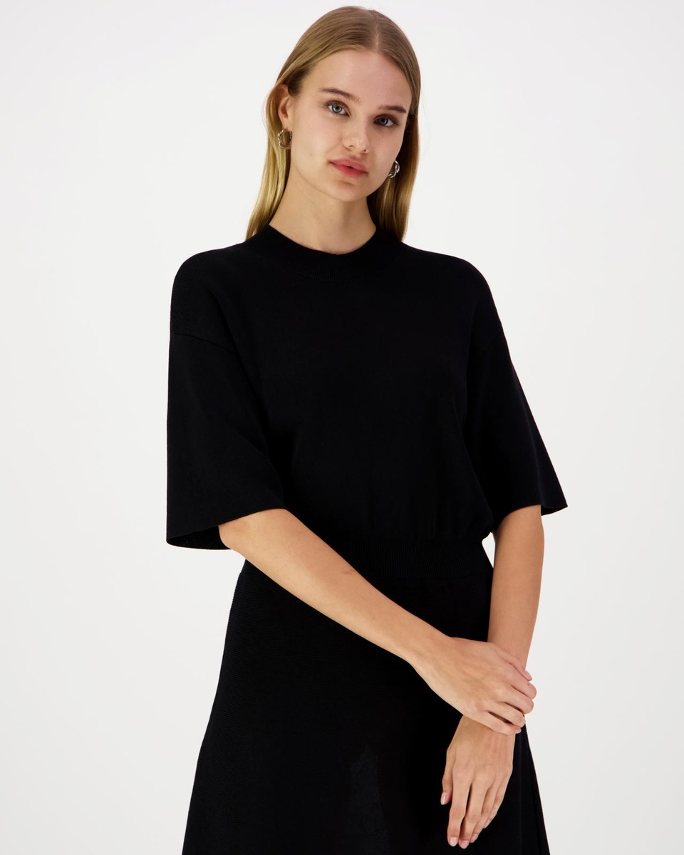 Samsøe Samsøen musta neulottu viskoosi mekko. Mekossa kiristetty vyötärö, pyöreä pääntie ja helman pituus on polven ylpäpuolelle. Mekko on valmistettu pehmeästä ja hengittävästä Lenzing Ecovero -viskoosi-sekoitteesta. Tämä mekko on täydellinen naiselle, joka haluaa tyylikkään ja mukavan vaihtoehdon mihin tahansa tilaisuuteen.