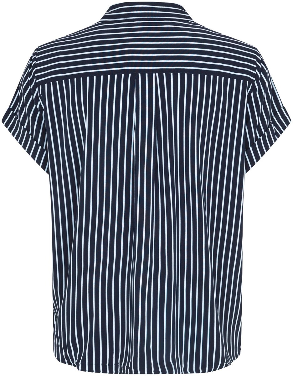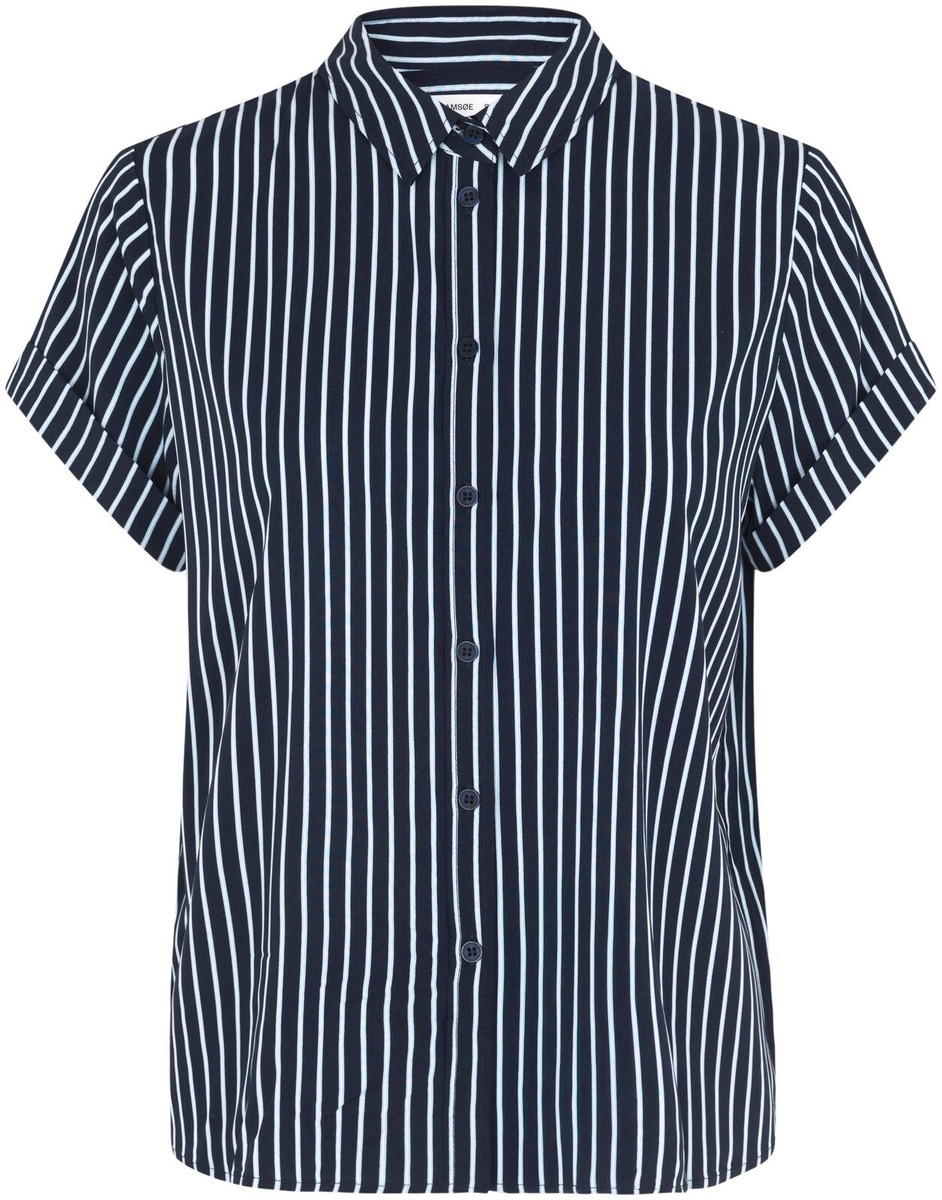 Samsøe Samsøen raidallinen lyhythihainen kauluspusero. Lyhyt hiha, kaulukset ja napit edessä. Malli on lyhyehkö ja suorahelmainen. Kangas on kauniisti laskeutuva, pehmeä ja hengittävä lenzing ecovero -viskoosi-sekoite.