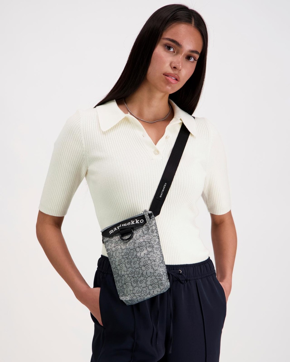 Piirto Unikko -kuosinen Neat Phone Pocket -kännykkäkotelo on valmistettu kierrätetystä polyesterikankaasta. Laukussa on säädettävä, kierrätetystä polyamidista valmistettu olkahihna, jossa on muovinen pikalukko. Laukku sulkeutuu vetoketjulla, ja siinä on Marimekko-tuotemerkkilappu sekä avainrengas edessä. Piirto Unikko on ilmavan tyylitelty tulkinta Maija Isolan vuonna 1964 suunnittelemasta rakastetusta Unikko-kuosista. Tämä minimalistinen versio korostaa Unikko-kuvion graafisia linjoja.