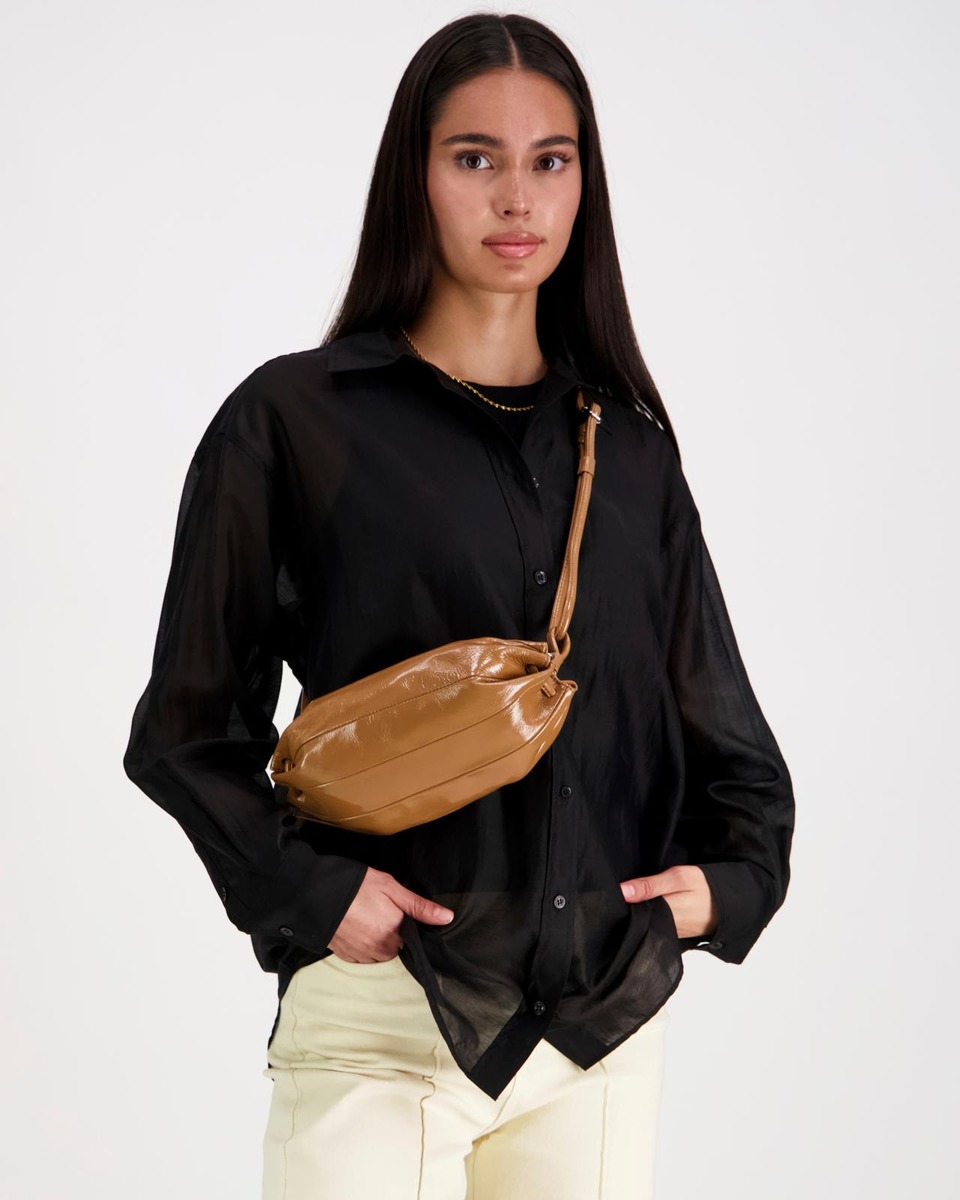 Karkkipaperista inspiraationsa saanut Pikku Karla Patent -olkalaukku on valmistettu kiiltonahasta. Pienessä laukussa on kapea metallisoljella säädettävä olkahihna, vetoketjusuljenta ja sisäpuolella yksi vetoketjutasku. Nahasta valmistetun olkalaukun sisävuori on valmistettu 100-prosenttisesta kierrätetystä polyesterista. Marimekko on Leather Working Groupin (LWG) jäsen. LWG on sitoutunut kehittämään vastuullisempaa nahan valmistusta.