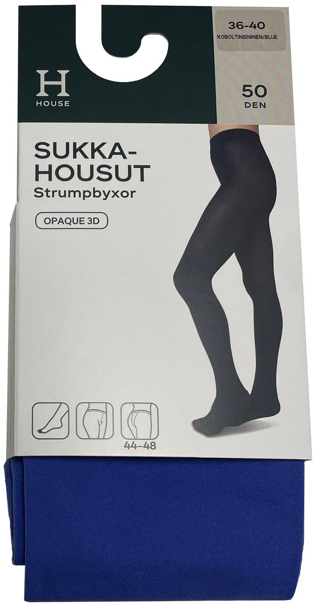 Naisten House-sukkahousut on valmistettu pehmeästä ja joustavasta polyamidi-elastaanisekoituksesta, joka takaa miellyttävän käyttökokemuksen. Saatavilla kokovaihtoehdoissa: 36-40, 40-44 ja 44-48. Isoimmassa koossa on 7 cm haarakiila.