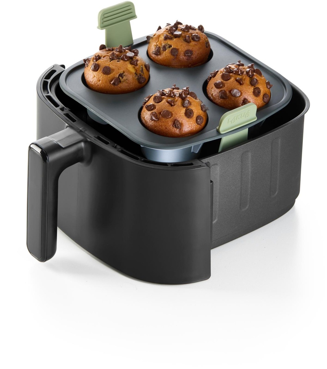 Joustava, tarttumaton rakenne helpottaa irrottamista.Valmista herkulliset muffinit helposti air fryerissä. Valmista alle 30 minuutissa!Ulosvedettävät, liukumattomat kahvat tarjoavat tukevamman ja miellyttävämmän otteen.Nosta kahvoista korin helppoa irrottamista varten ja laske kahvat alas, kun haluat hyödyntää air fryerin tilan maksimaalisesti kypsennyksen aikana.Vahvistettu ja vakaa pohja miellyttävämpää käyttöä varten.Sopii air fryeriin, uuniin, mikroaaltouuniin, jääkaappiin ja astianpesukoneeseen.Valmistettu 100 % platinasilikonista, ei sisällä BPA:ta.Käytä aina patakintaita tai patalappuja palovammojen välttämiseksi.