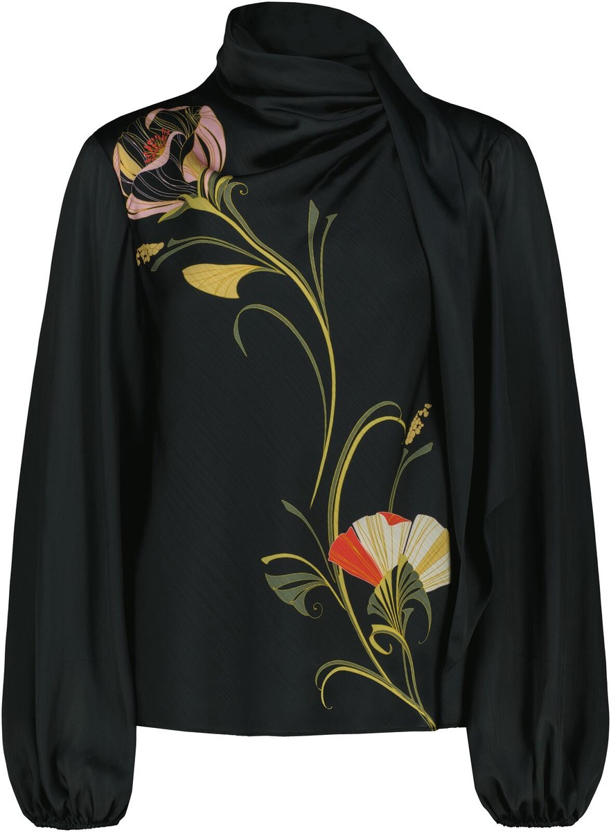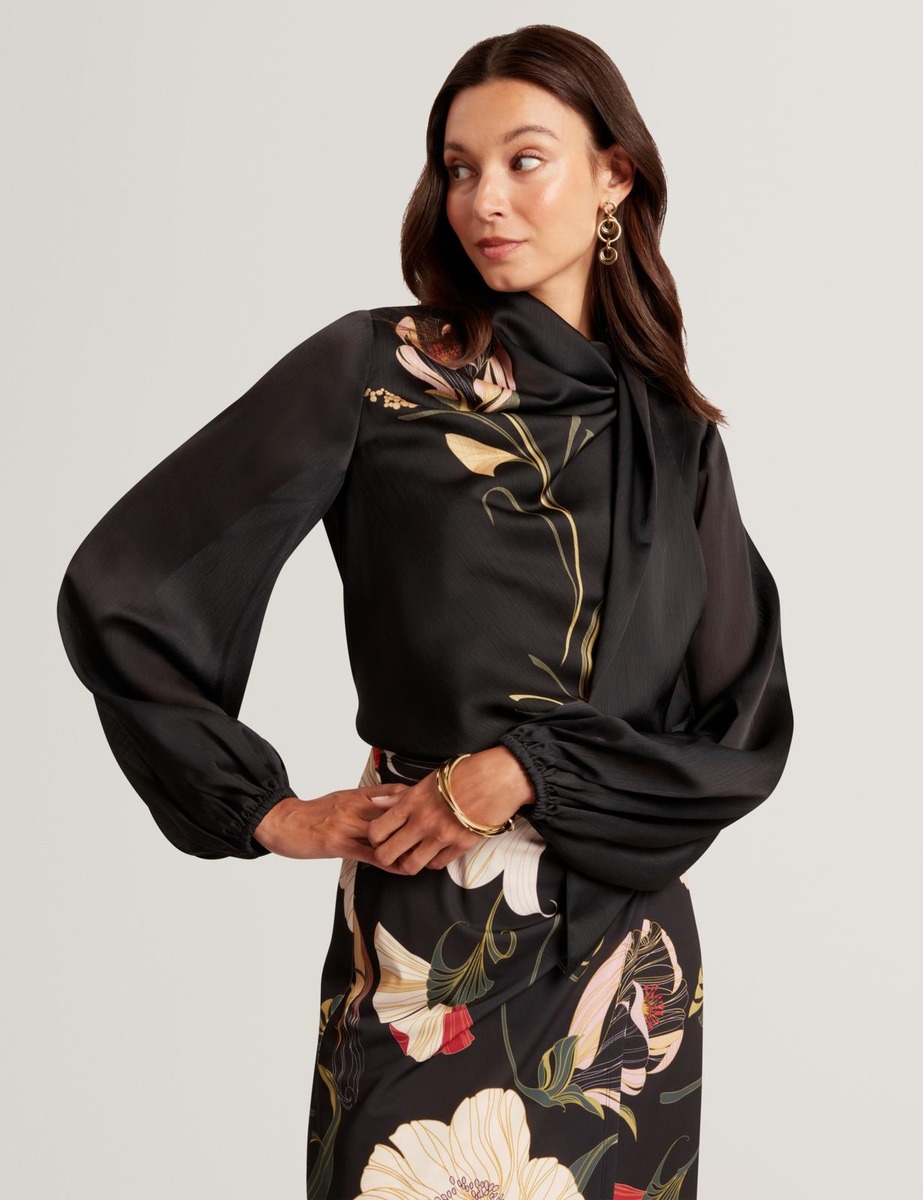 Pitkähihainen pusero jossa puhvimaiset hihat ja edessä kaunis kukkaprintti.