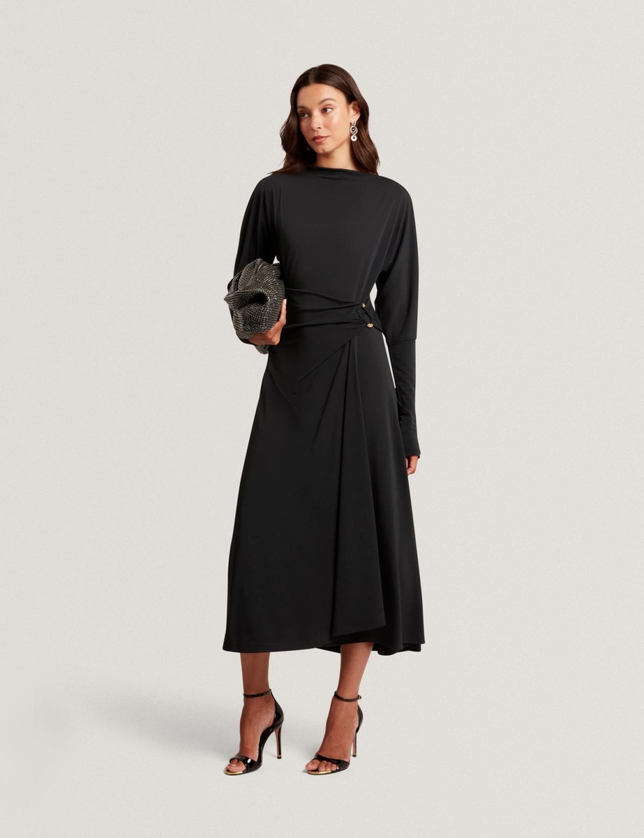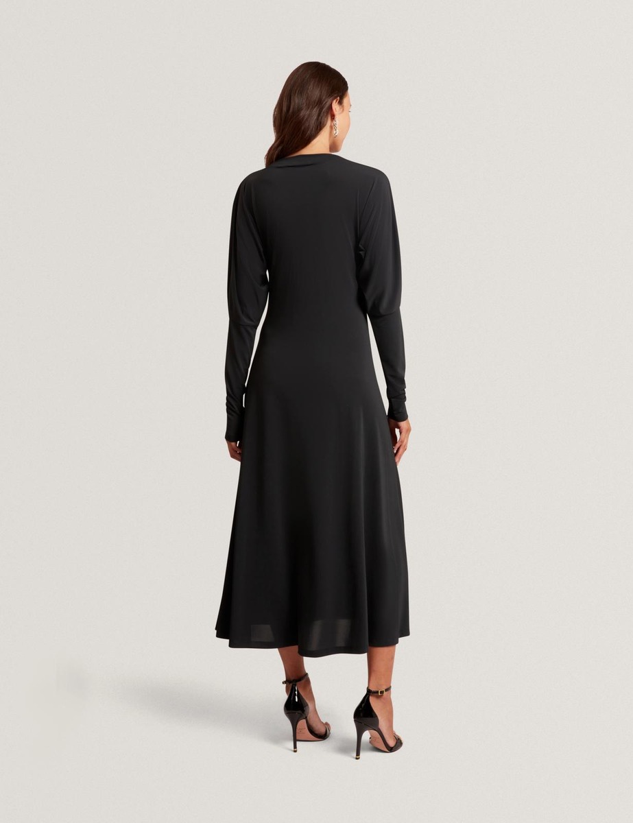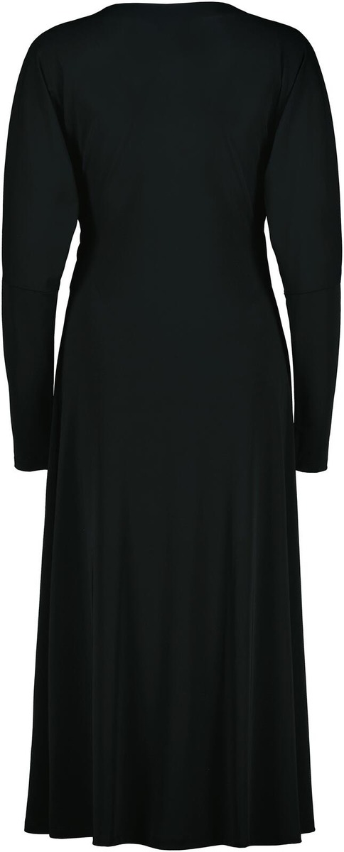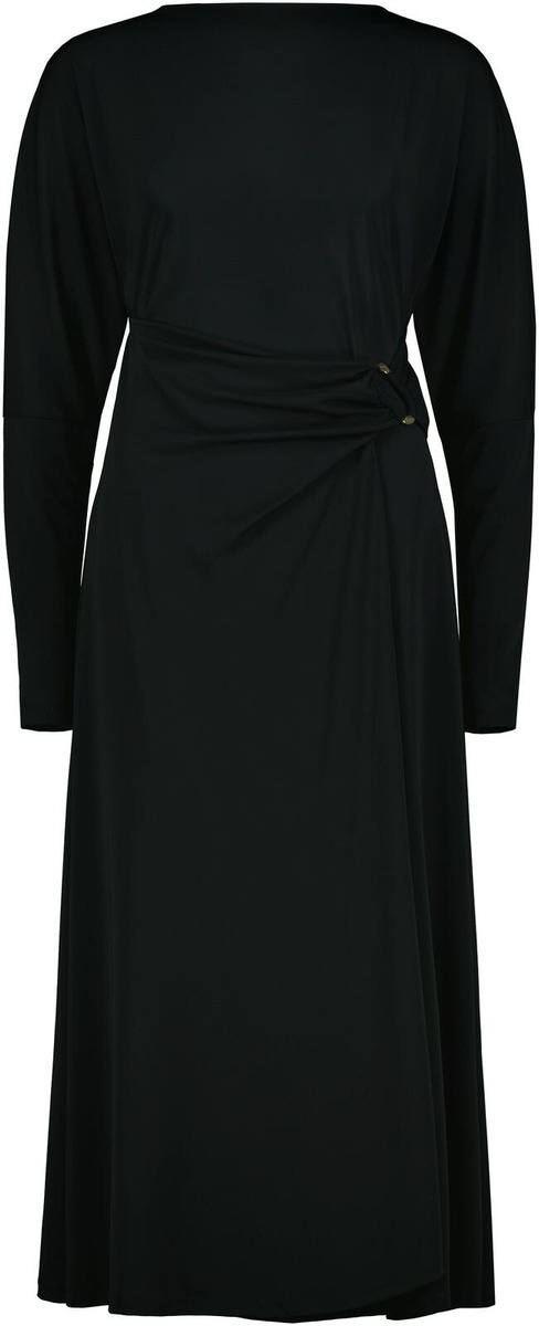 Pitkähihainen jerseymekko, jossa edessä kaunis kietaisuyksityiskohta.