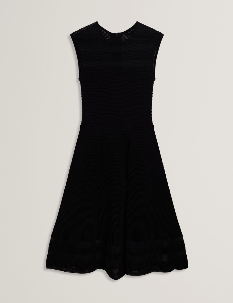 Hihaton kellohelmainen mekko hieman läpikuultavaa ribattua neulosta.