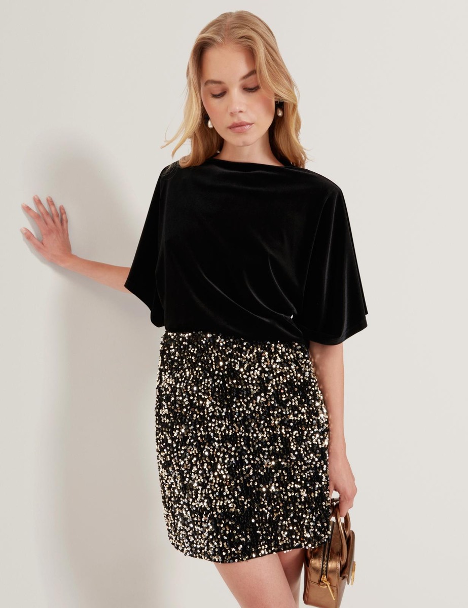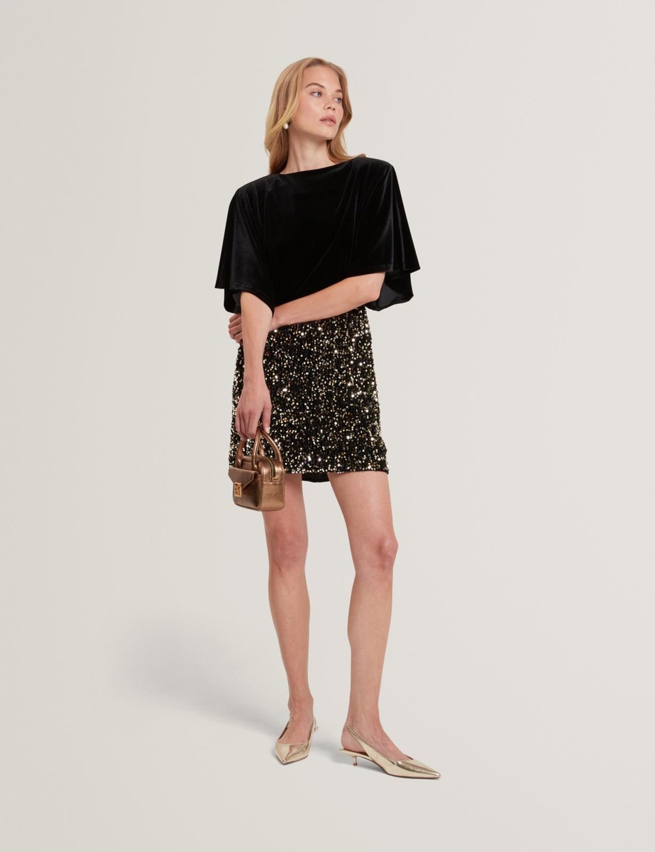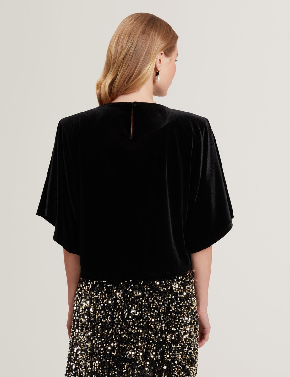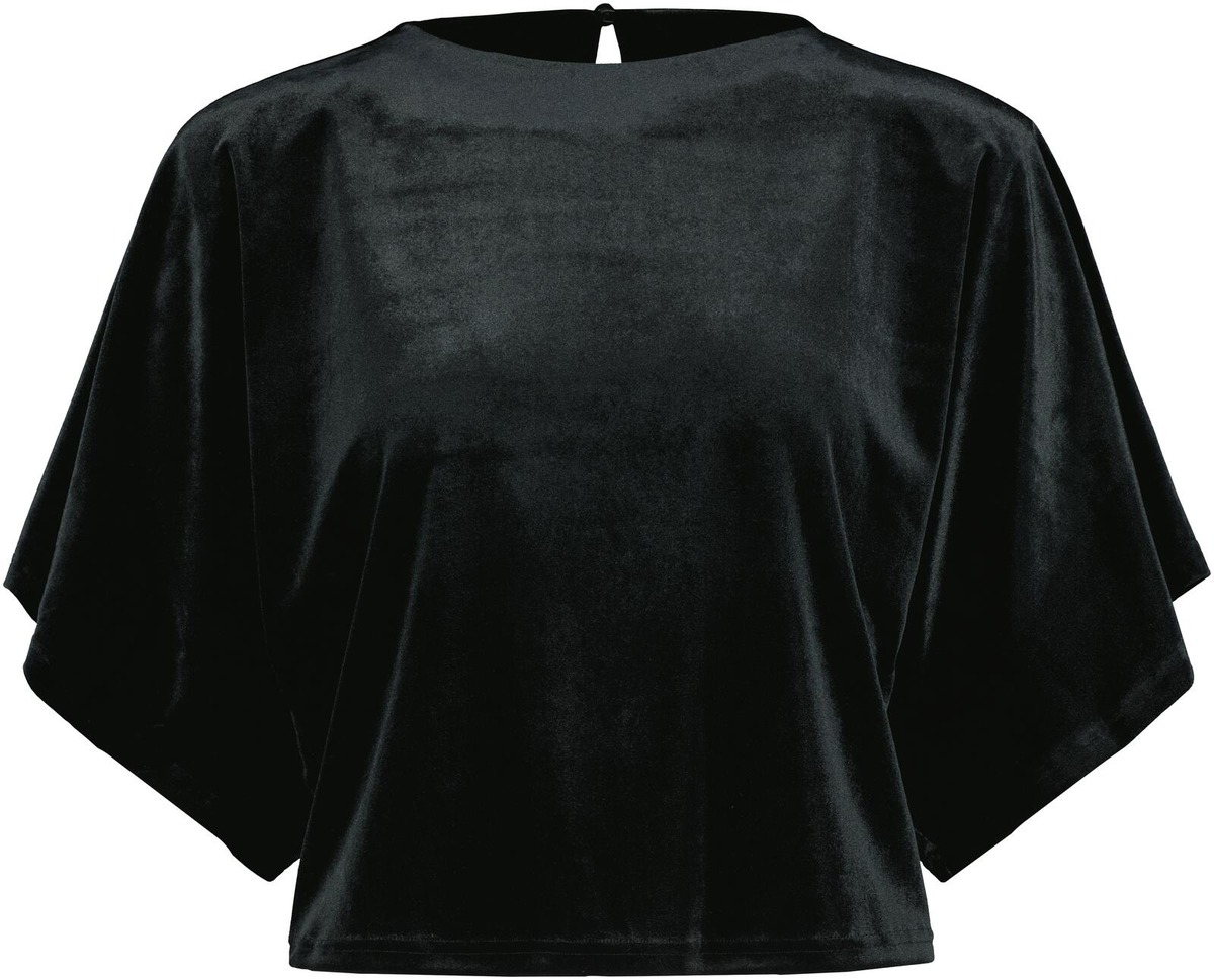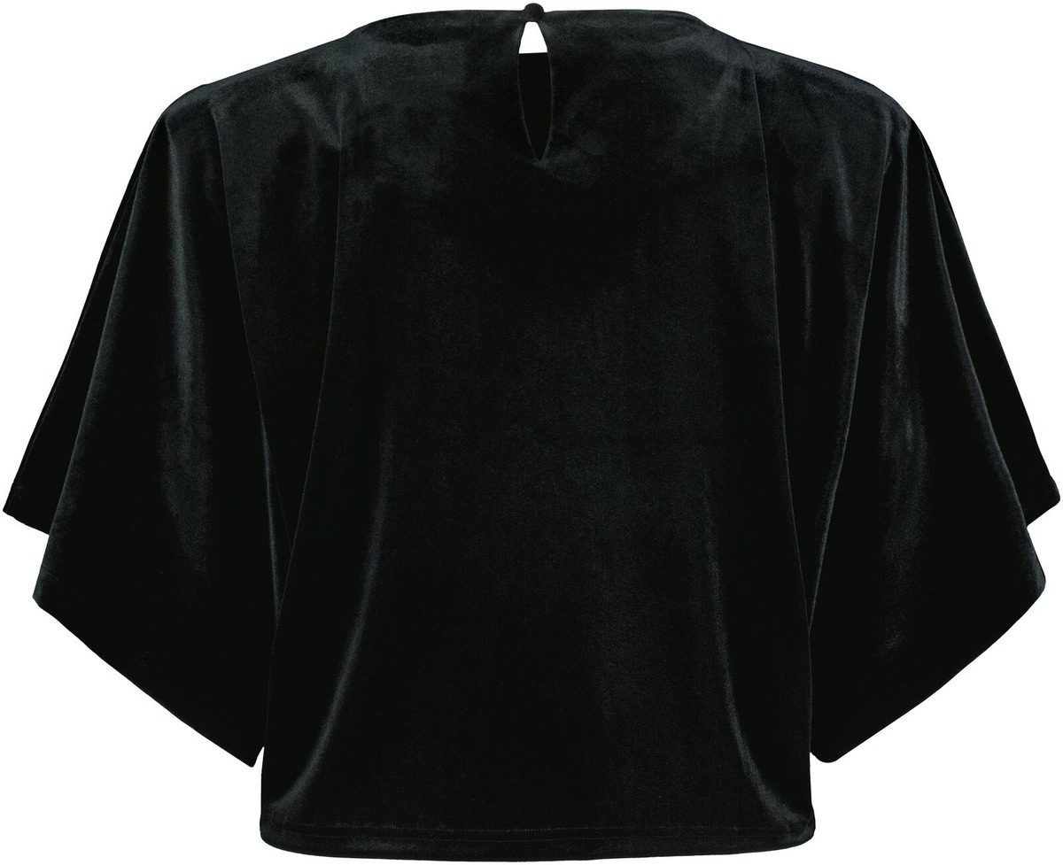 Upea samettinen pusero, jossa lyhyet hieman leveät hihat.