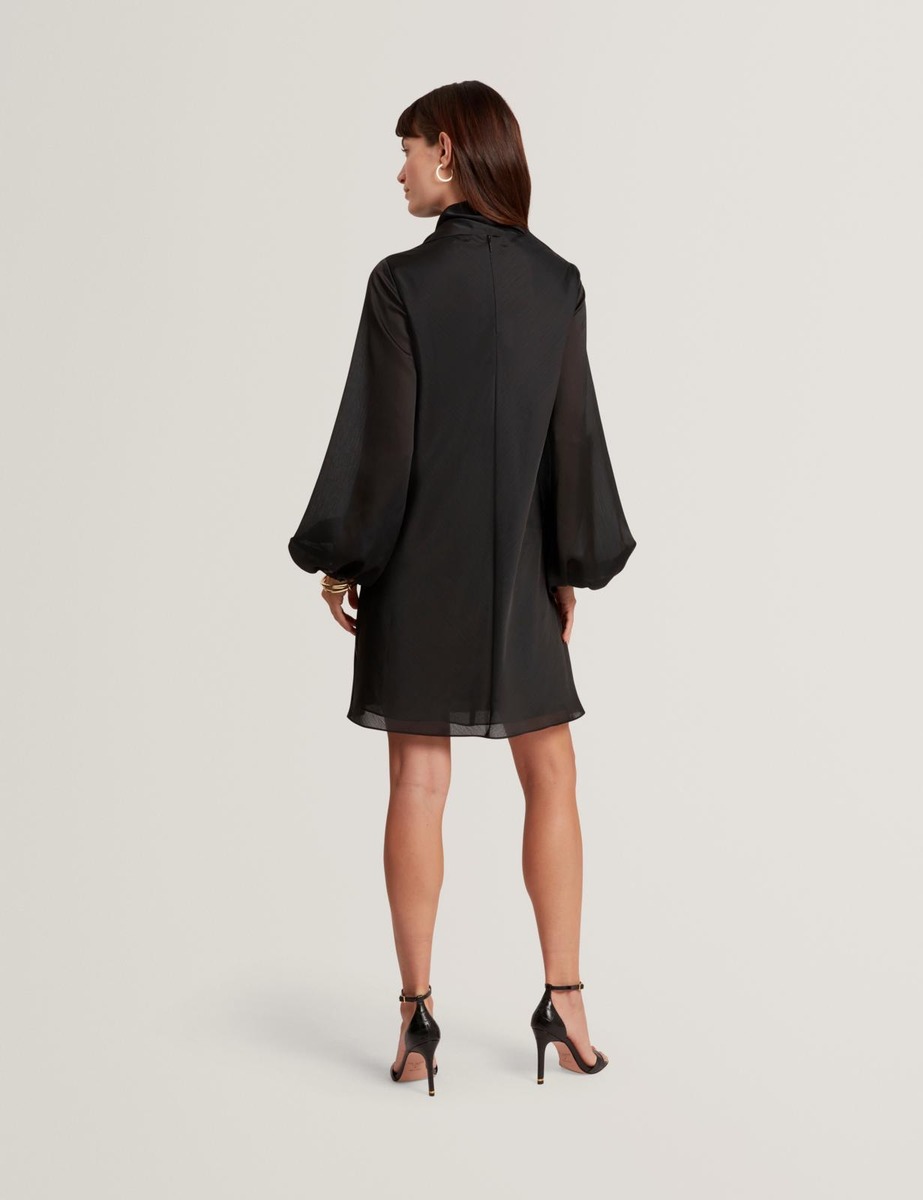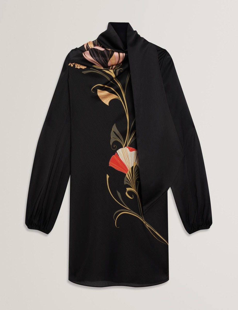 Pitkähihainen mekko jossa puhvimaiset hihat ja edessä kaunis kukkaprintti.