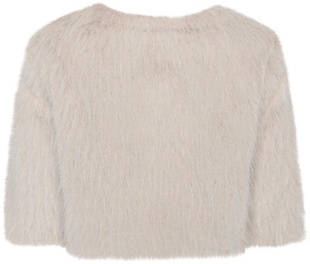 Bruuns Bazaar Pruni Villa bolero jacket on yhdistelmä trendikästä leikkisyyttä ja ajattomuutta. Tämä lyhyt vaalea tekoturkistakki on suunniteltu niin juhlaan kuin kaupunkikaduillekin. Lyhyt leikkaus ja pehmeä tekoturkis luovat luksusta samalla kun istuvuus on rento ja monikäyttöinen. Kauniit vajaamittaiset hihat keventävät mallia käytettäväksi myös mekkojen kanssa bleiserin sijaan.