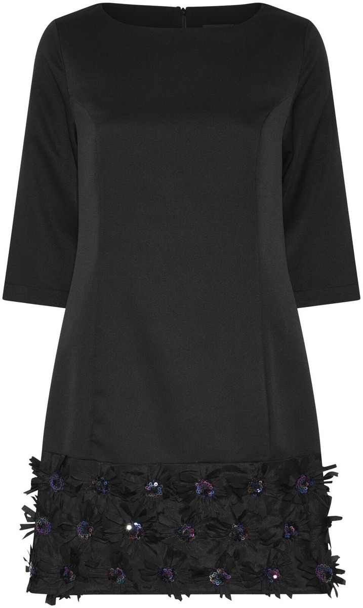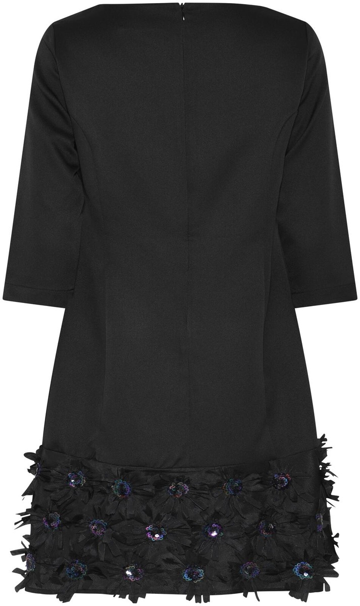 Bruuns Bazaar Lanceo Malle dress on sekoitus klassista kotelomekkoa ja trendikästä paljettimekkoa. Kauniit 3/4 hihat ja aavistuksen a-linjainen malli on helppo pukea sellaisenaan vaativampaankin juhlaan. Helmaa koristaa paljeteilla koristeltu ruusuke kaistale, mikä tekee sopivasti modernin ilmeen.