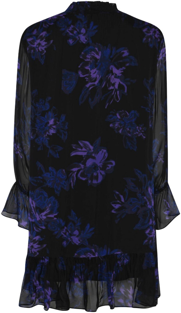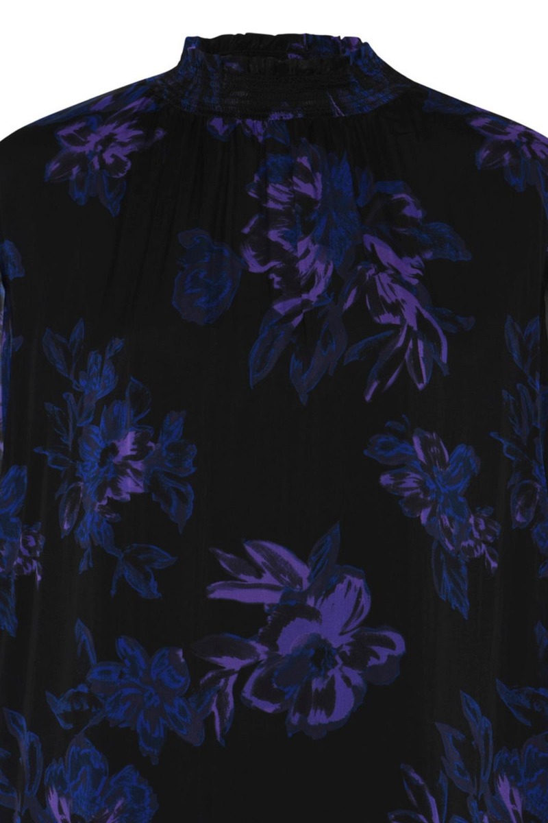 Bruuns Bazaar Triloba Viljas dress - on upea pitkähihainen ja a-linjainen mekko joka toimii sekä arjessa että juhlassa. Kaunis ja moderni kukkakuosi on syksyn trnedikästä violetin ja lilan sävymaailmaa. Etu. Ja takakappaleessa on vuorikangas. Kauniit kuminauharypytykset luovat naisellisuutta pääntiehen ja hihoihin.