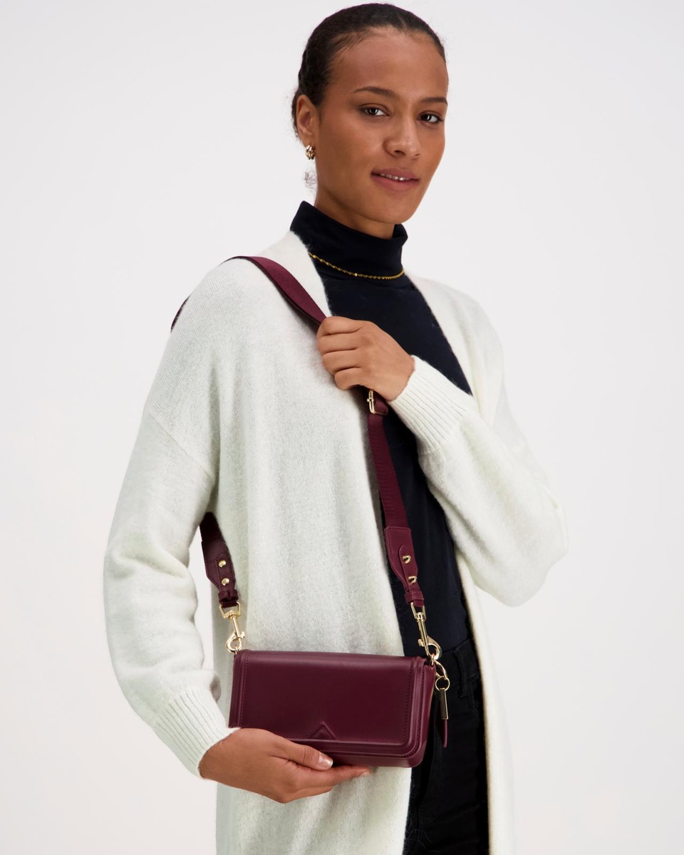 Keinonahkainen olkalaukku irrotettavalla olkahihnalla.