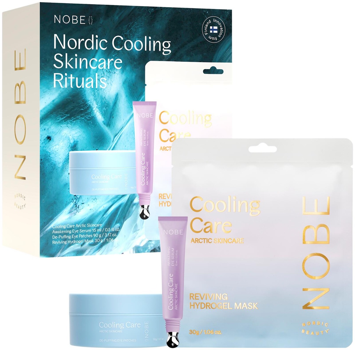 Aloe veralla ja prebioottisella ksylitolilla rikastettu kolmikko on suunniteltu piristämään ja elvyttämään väsynyttä ihoa. Setti sisältää NOBE Cooling Care Reviving Hydrogel Mask -kasvonaamion, NOBE Cooling Care De-Puffing Eye Patches -silmänalusnaamiot sekä NOBE Cooling Care Awakening Eye Serum -silmänympärysseerumin (15 ml). Yhdessä ne vähentävät turvotusta, kosteuttavat tehokkaasti ja virkistävät ihoa.