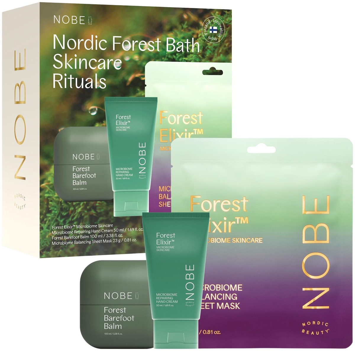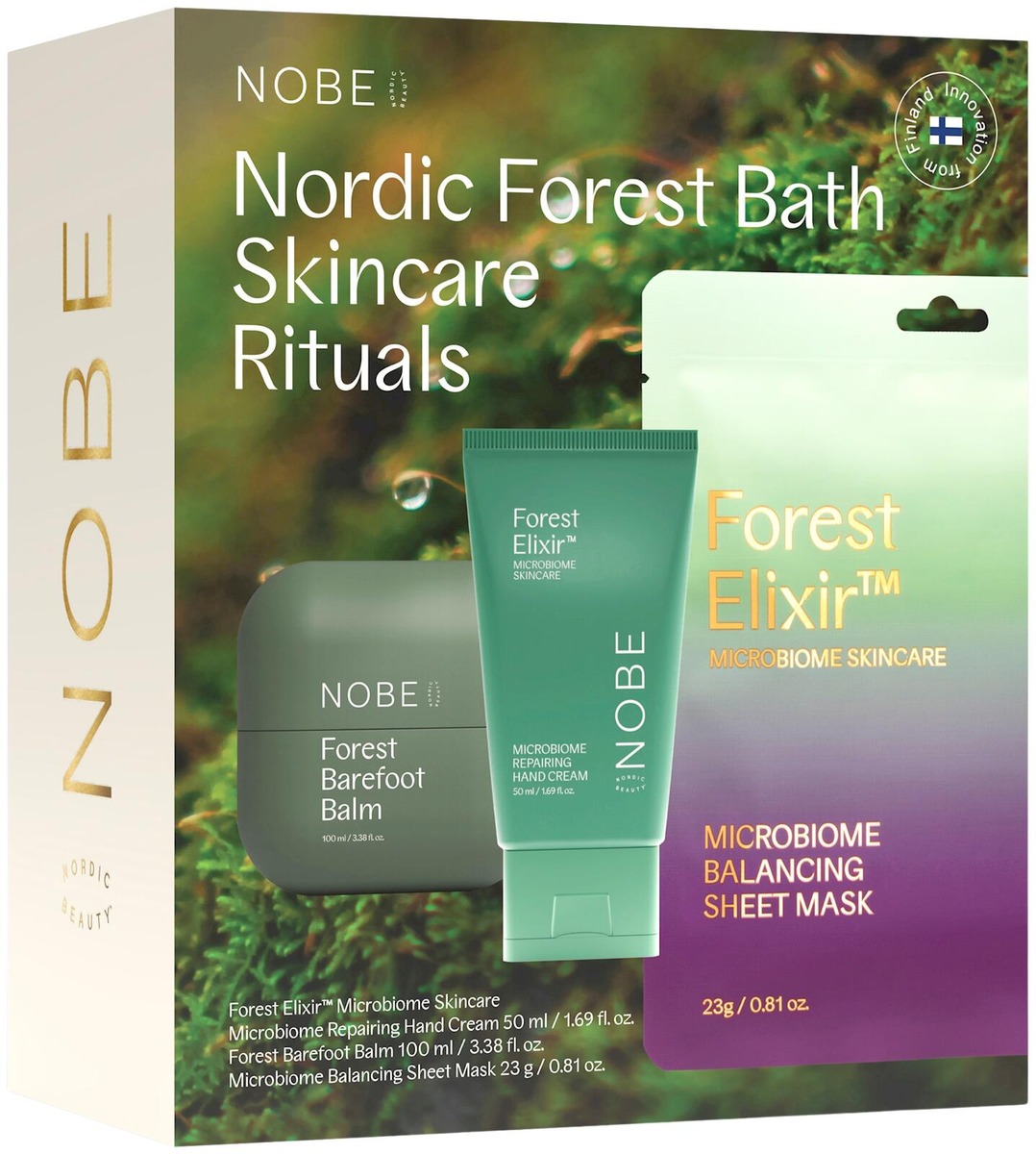 Tämä ihonhoitosetti on suunniteltu tasapainottamaan ja vahvistamaan ihoasi innovatiivisen metsämikrobiuutteen avulla. Ylellinen kolmikko sisältää suojaavan NOBE Forest Elixir® Microbiome Repairing Hand Cream -käsivoiteen (50 ml), kosteuttavan NOBE Forest Elixir® Forest Barefoot Balm -jalkavoiteen (100 ml) sekä uudistavan NOBE Forest Elixir® Microbiome Balancing Sheet Mask -kasvonaamion – jokainen niistä sisältää tarkoin valittuja ainesosia, jotka tukevat ihon omaa mikrobiomia.