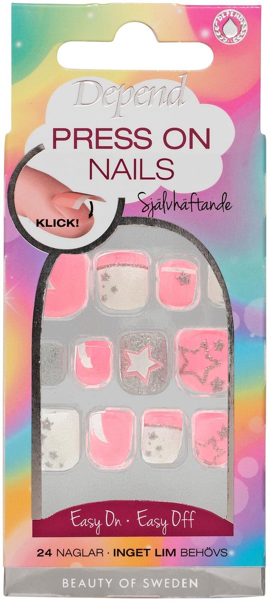 Käytä Dependin kynsilakanpoistoainetta, jolla voit poistaa mahdollisesti kynsilakan ja lian, jota voi olla kynnen pinnalla. Parhaan kestävyyden takaamiseksi on tärkeää, että luonnolliset kyntesi ovat puhtaat, kuivat ja rasvattomat. Kokeilemalla löydät oikean koon. Pidä irtokynttä oman kyntesi päällä, jotta näet sen sopivan. Aseta sen jälkeen irtokynnen takareuna kynsinauhaa vasten ja taita irtokynsi omaa kynttäsi vasten. Pidä paikallaan ja paina muutaman sekunnin ajan. Kestävät 1-3 päivää.