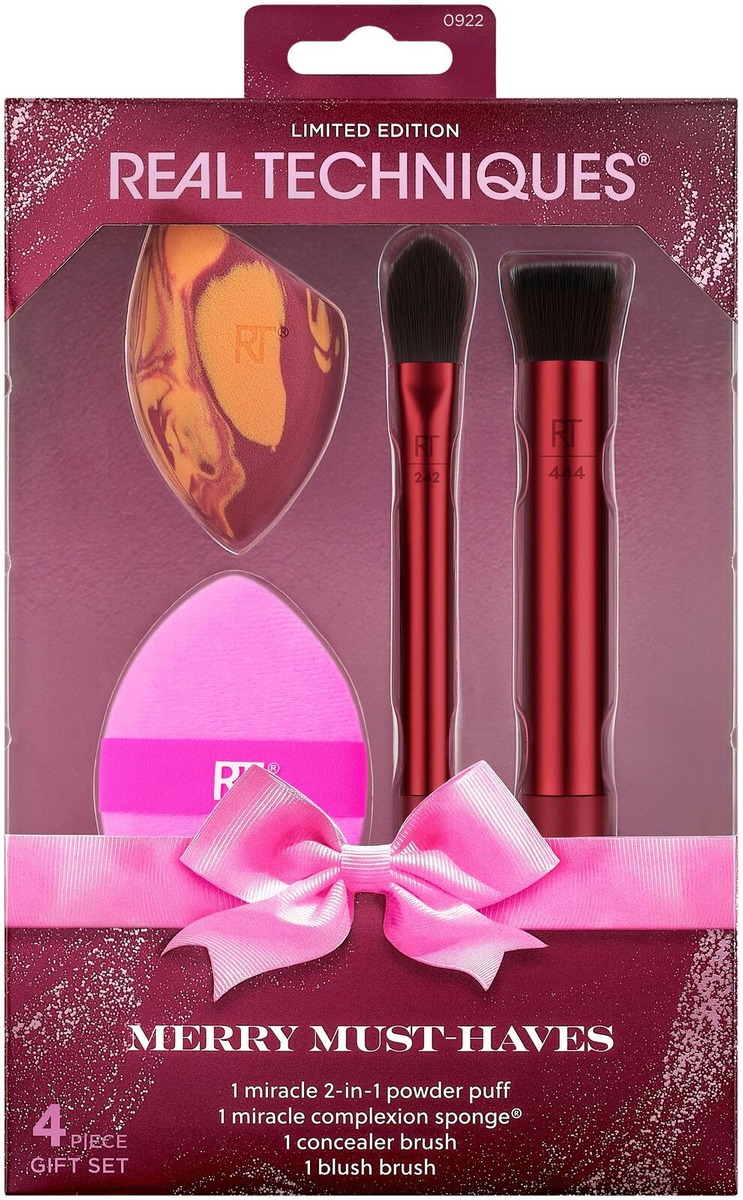 Merry Must-Haves -setti kokoaa yhteen neljä myydyintä meikkivälinettämme. Mukana Miracle Complexion meikkisieni, Miracle 2-in-1 Powder Puff, 242 Kitten Paw Concealer Brush ja 444 Filtered Cheek Brush – kaikki mitä tarvitset virheettömään juhlakauden meikkiin. Anna lahjaksi kauneustrendien edelläkävijälle – tai pidä itse omassa meikkikokoelmassasi.