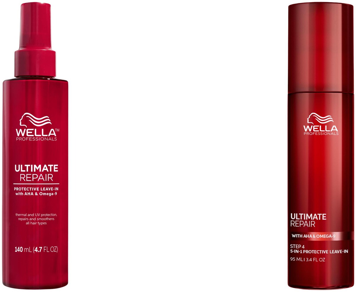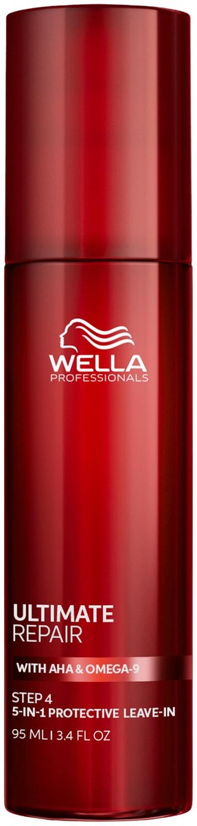 Wella Professionals Ultimate Repair Protective Leave-in on ylellinen hiusvoide, joka toimii seerumin tavoin ja sisältää alfahydroksihappoa (AHA) ja omega-9-rasvahappoja. Hiuksiin jätettävä suojavoide suojaa vaurioituneita hiuksia välittömästi viideltä yleisimmältä tekijältä: katkeilulta, UV-säteilyltä, muotoilulaitteiden aiheuttamilta lämpövaurioilta jopa 230 °C asti, värikäsittelyjen aiheuttamilta mekaanisilta vaurioilta ja pörröisyydeltä. Ammattimainen 5-in-1-hiusvoide korjaa hiuksia, helpottaa muotoilua, vähentää katkeilua 99 % ja poistaa pörröisyyttä jopa 72 tunnin ajan* tehden hiuksista jopa 8 kertaa sileämmät*.