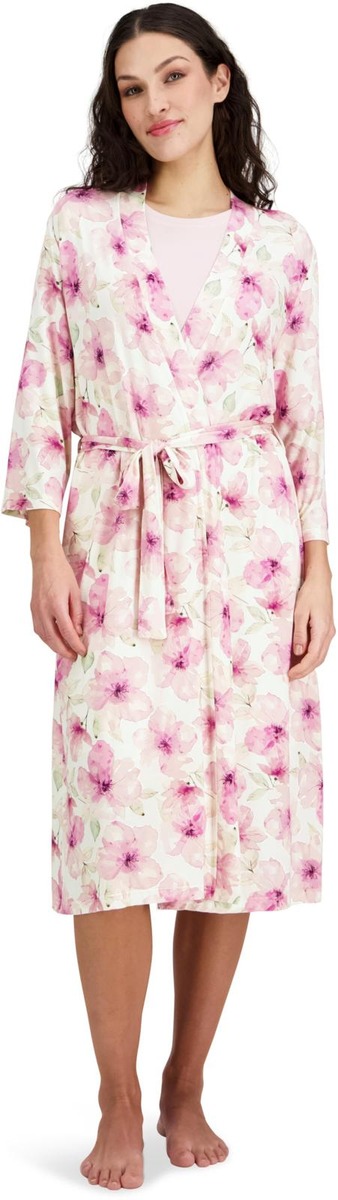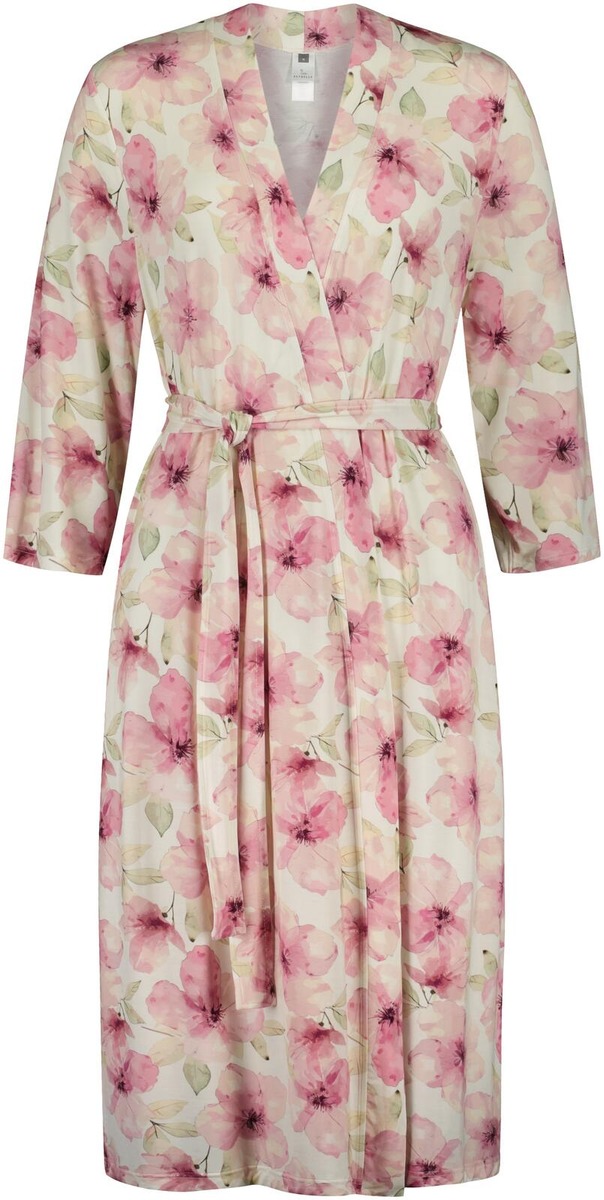Upea, pitkä kimonoaamutakki. Näyttävä kukkakuosi, laskeutuvaa ja pehmeää viskoosisekoitetta. Aamutakin pituus n. 110cm
